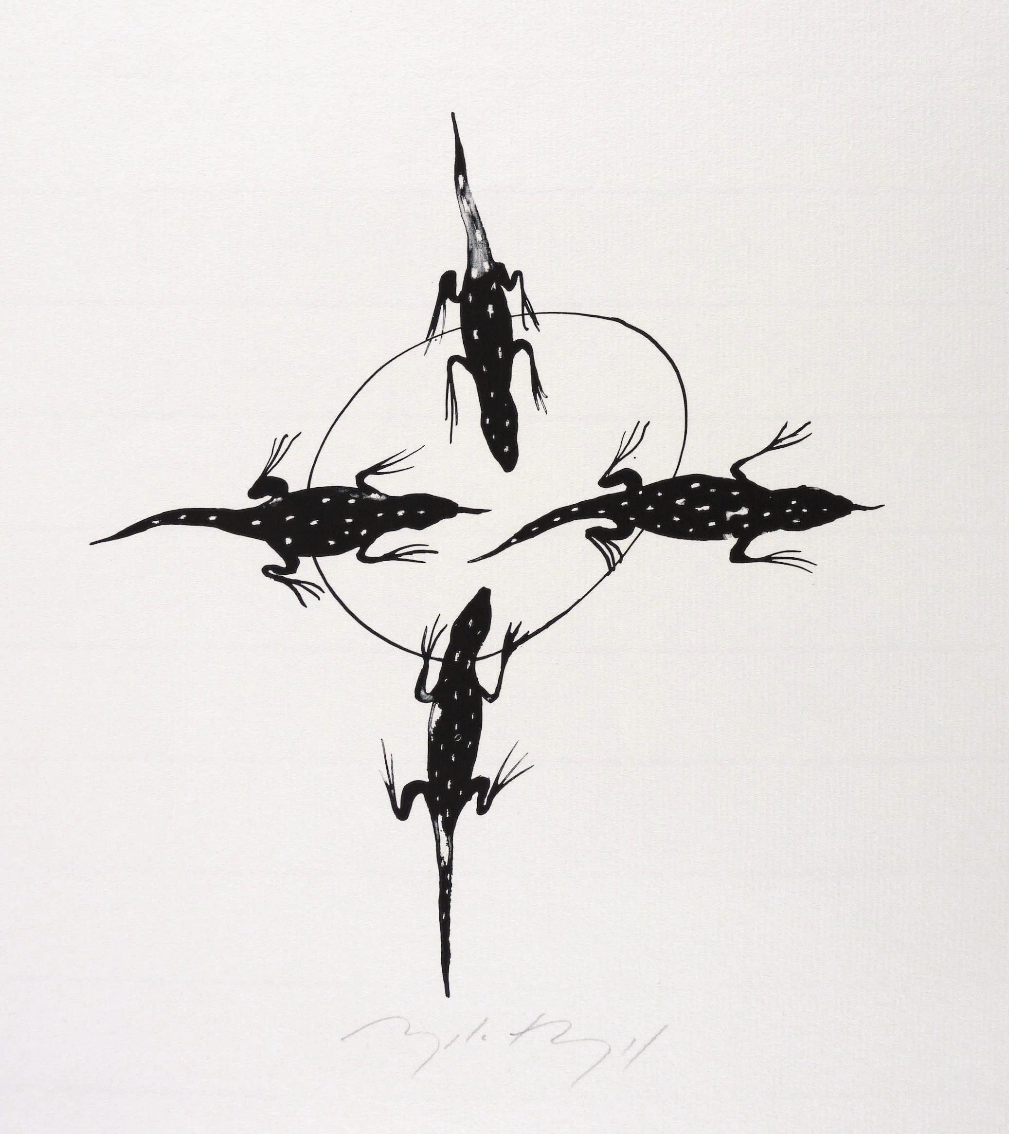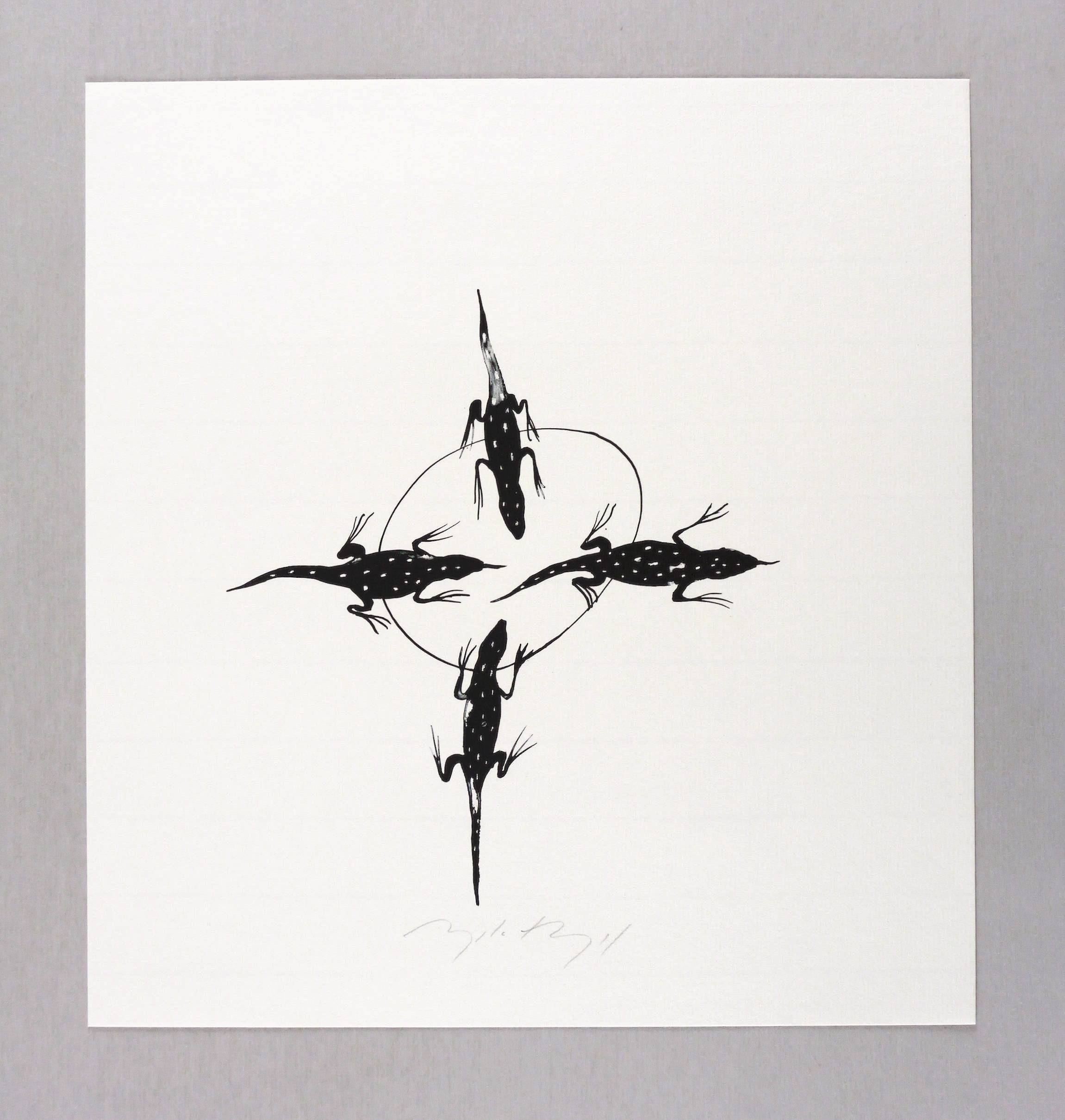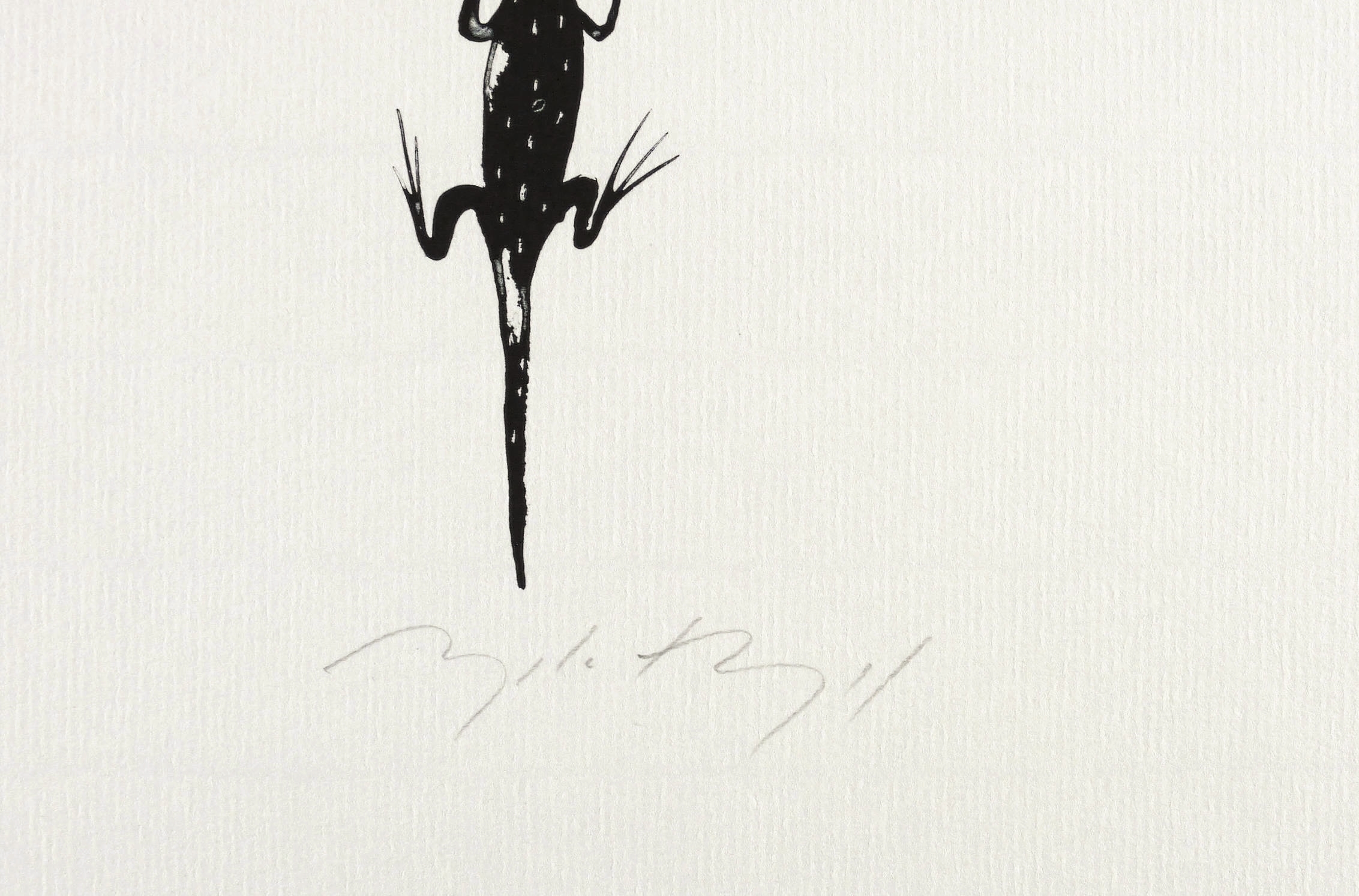 1998. Algrafie / Pinselalgrafie, in Schwarz, auf leichtem hellgelbem Maschinenbütten. – Originale Künstlergrafik, von Angela Hampel. – Auflage 120 Exemplare. – 20,8 x 18,7 cm (Darstellung / Druckbild), 32 x 30 cm (Blatt).