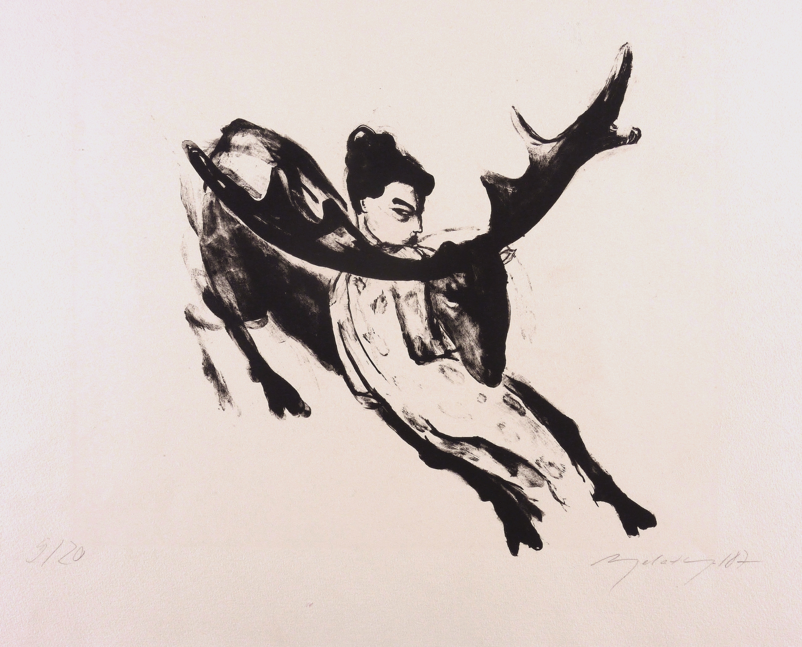 1987. Lithografie / Pinsellithografie, in Schwarz, auf schwerem chamois Hahnemühle. – Originale Künstlergrafik, von Angela Hampel. – Auflage Exemplar Nr. 9/20. – 33,0 x 30,0 cm (Darstellung / Druckbild), 47 x 57 cm (Blatt).