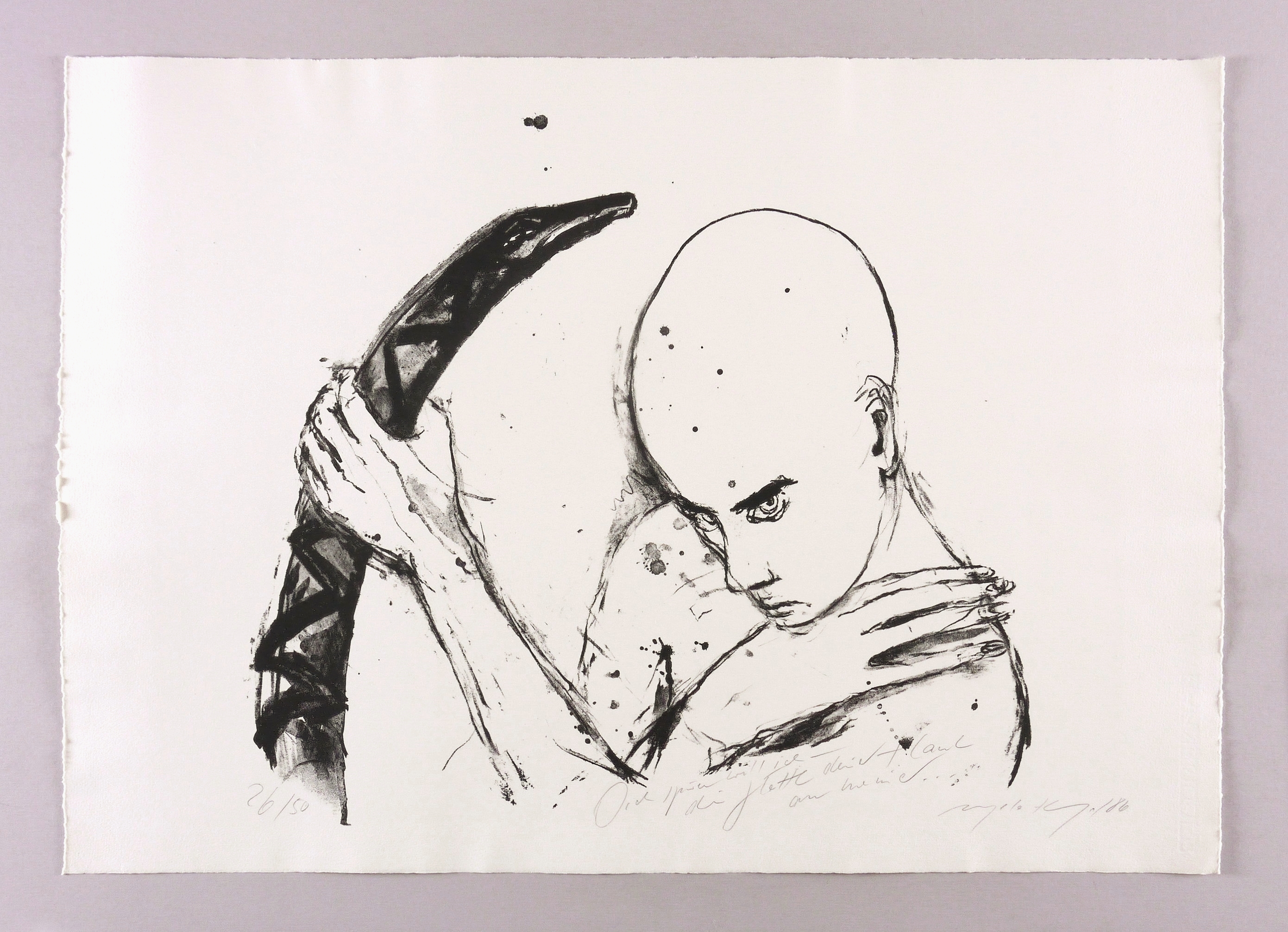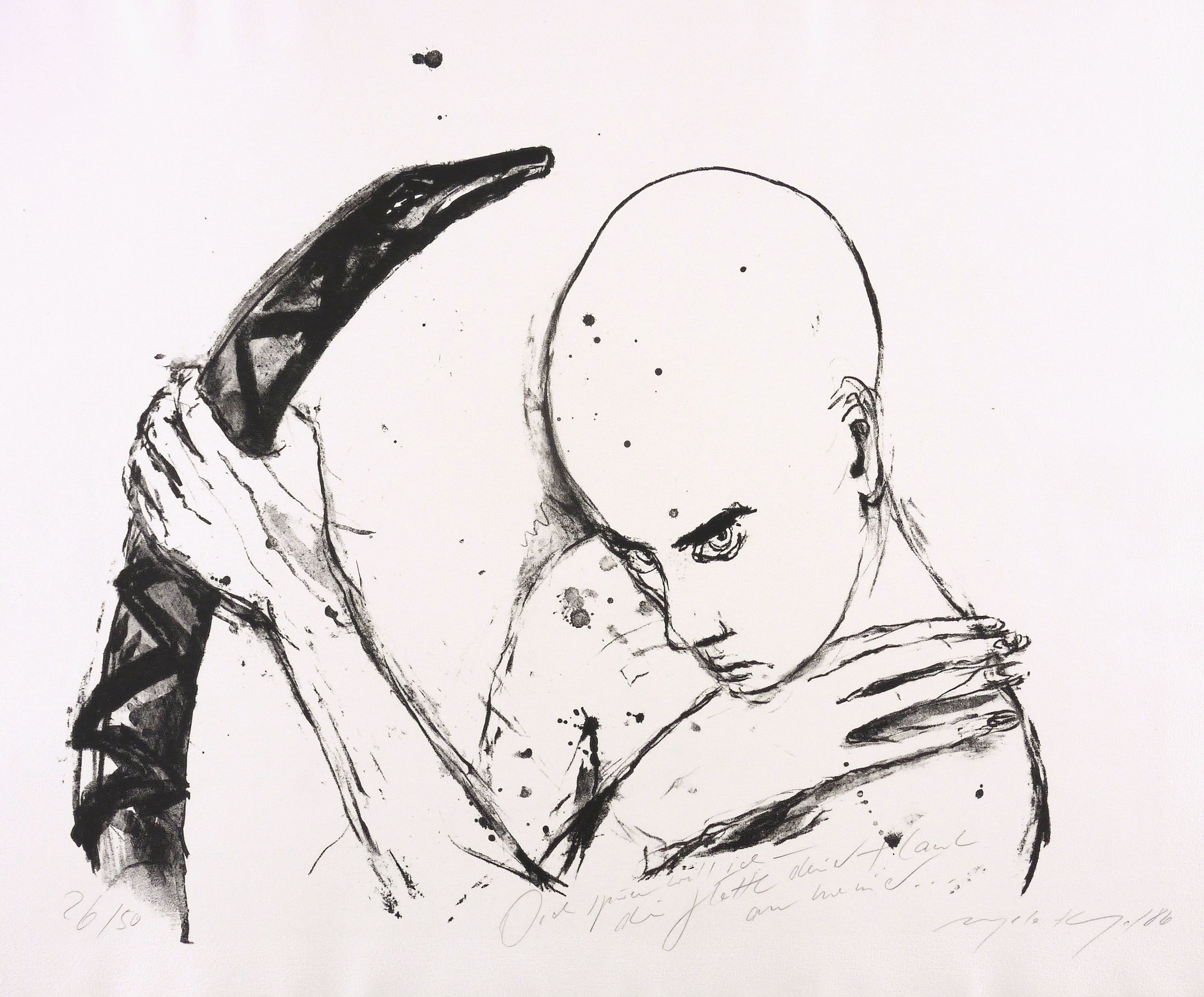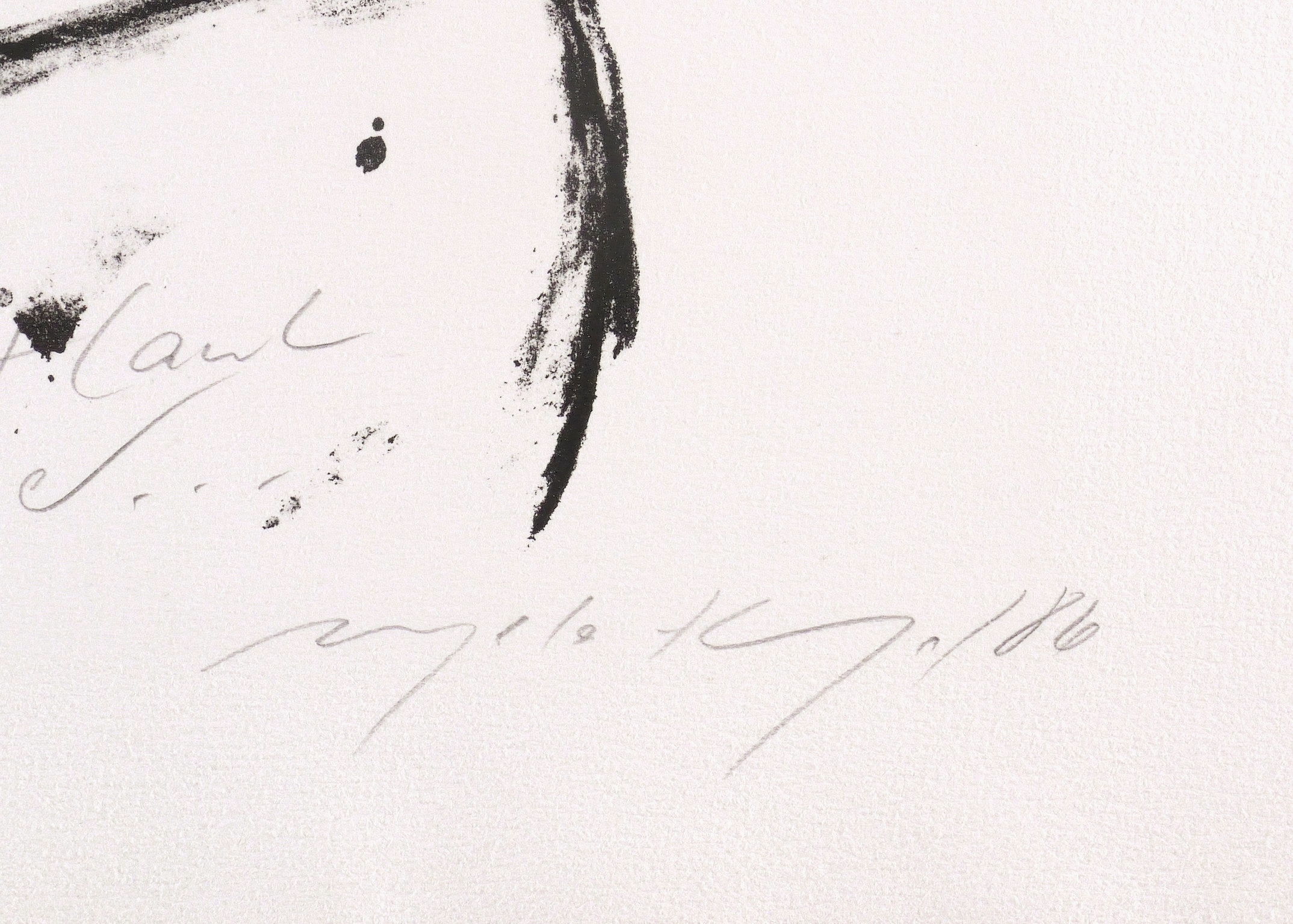 1986. Lithografie / Pinsellithografie, in Schwarz, auf hellchamois Hahnemühle. – Originale Künstlergrafik, von Angela Hampel. – Auflage Exemplar Nr. 26/50. – 43,3 x 48,2 cm (Darstellung / Druckbild), 50 x 71 cm (Blatt).