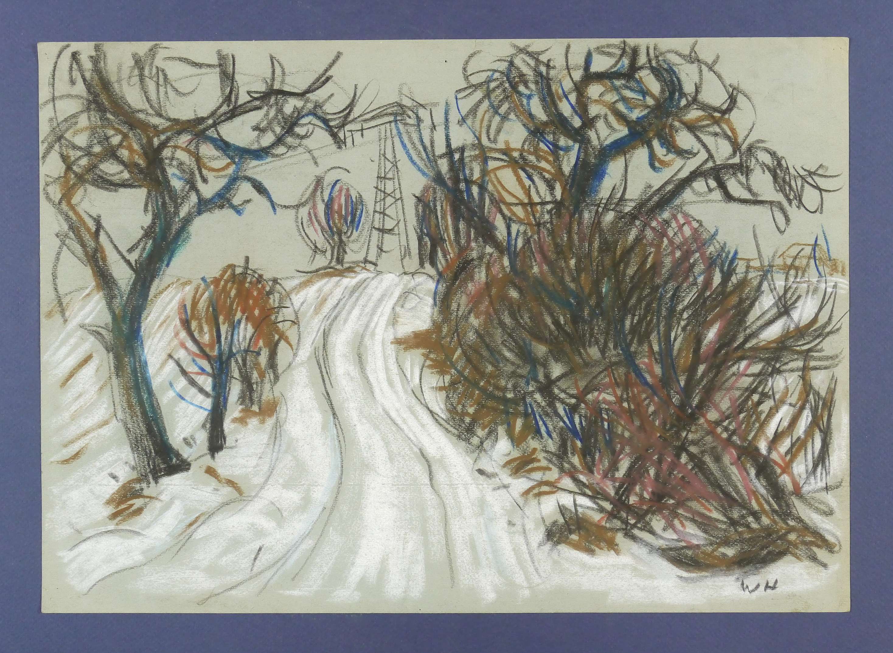 Um 1975. Zeichnung / Pastellkreide, auf hellgrauem Papier. – Originale Künstlergrafik, von Werner Haselhuhn. – Unikat. – 29,7 x 41,8 cm (Darstellung / Blatt).