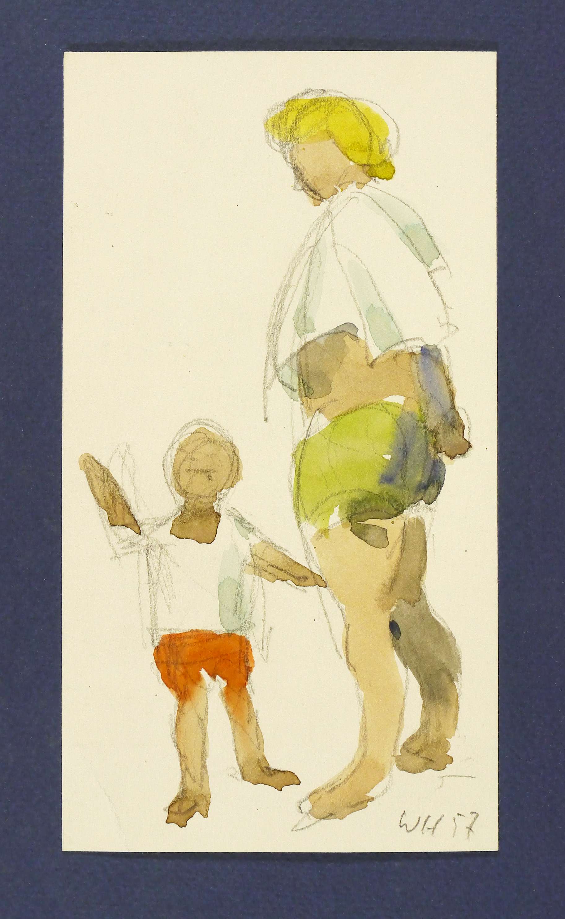 Haselhuhn, Werner. – „Mutter mit Kind am Strand”.
