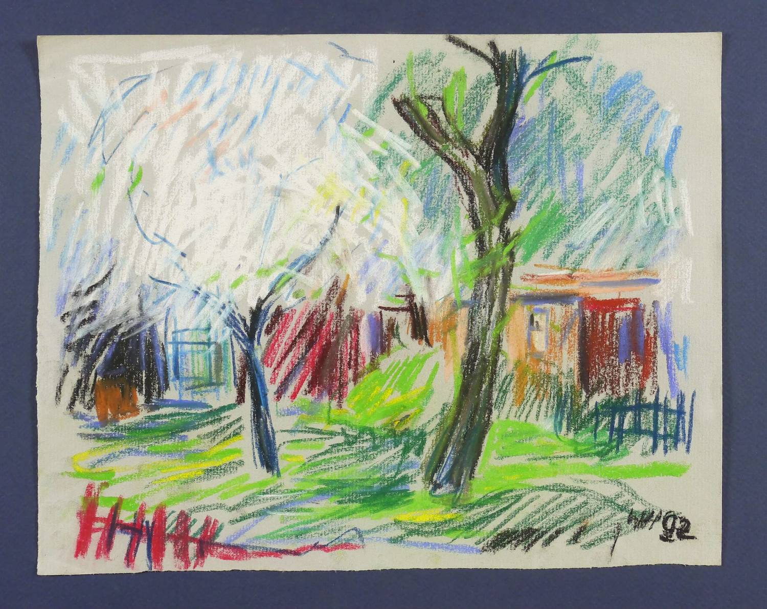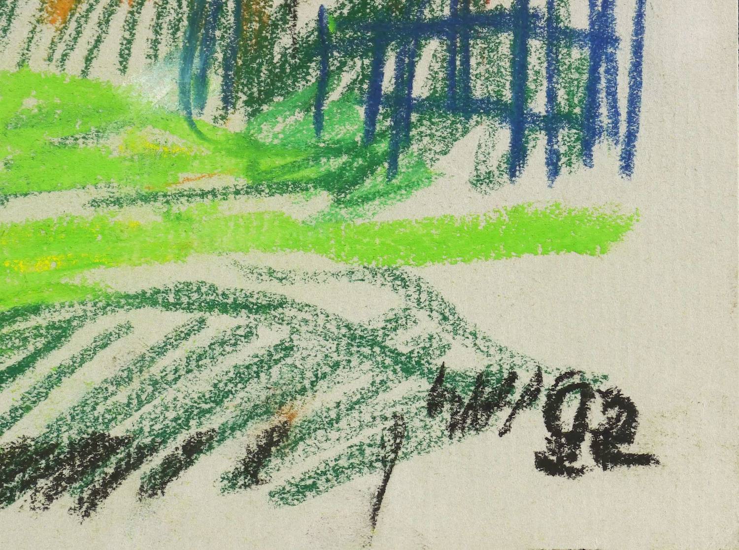 1992. Zeichnung / Pastellkreide, auf grauem Büttenpapier. – Originale Künstlergrafik, von Werner Haselhuhn. – Unikat. – 25,0 x 32,0 cm (Darstellung / Blatt).