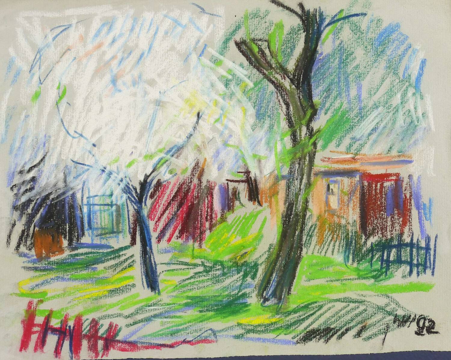 Haselhuhn, Werner. – „Blühende Obstbäume im Garten”.