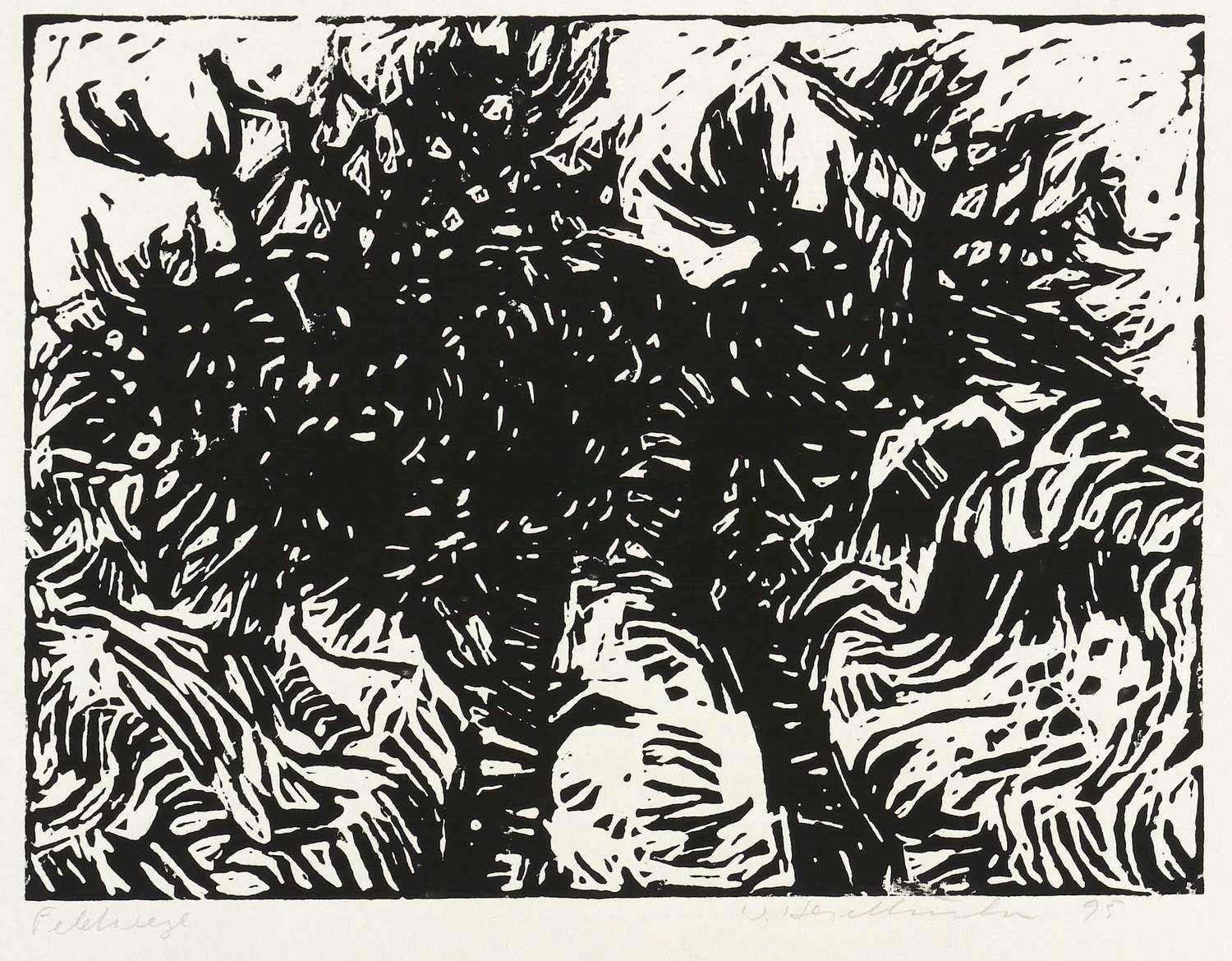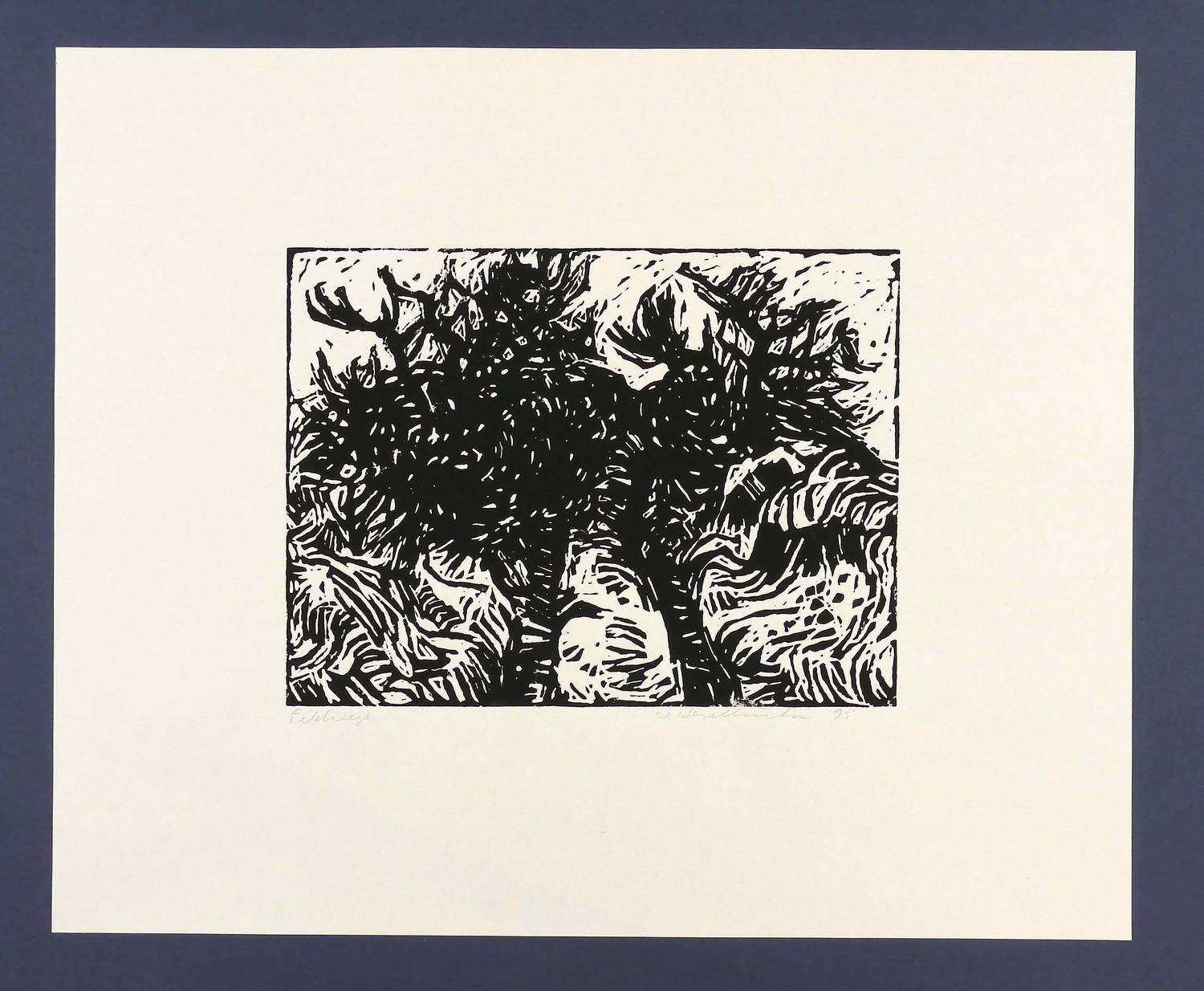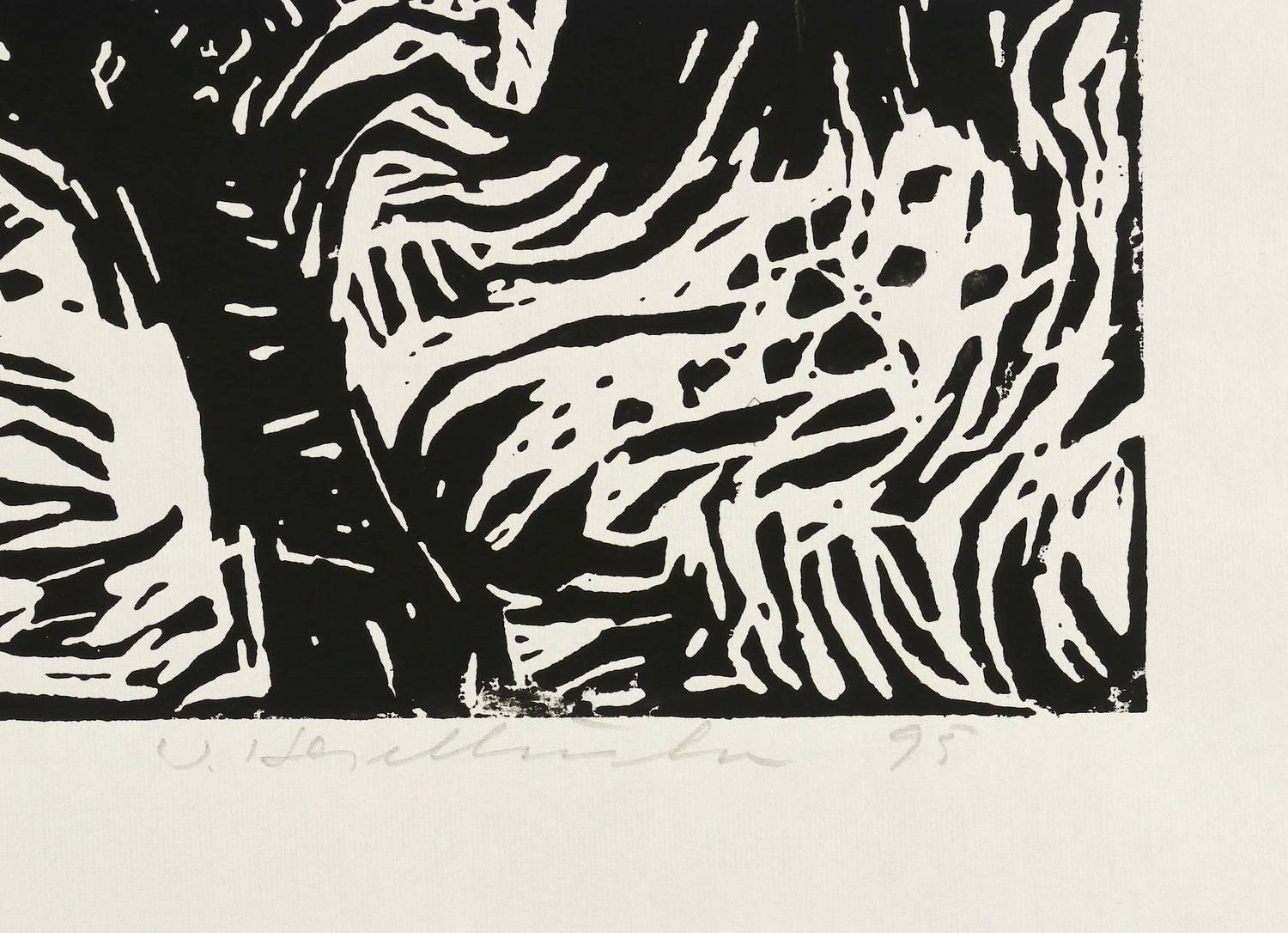 1995. Holzschnitt, in Schwarz, auf Japanbütten. – Originale Künstlergrafik, von Werner Haselhuhn. – 24,0 x 32,0 cm (Darstellung / Druckstock), 47 x 58 cm (Blatt).