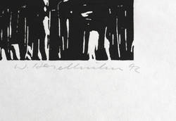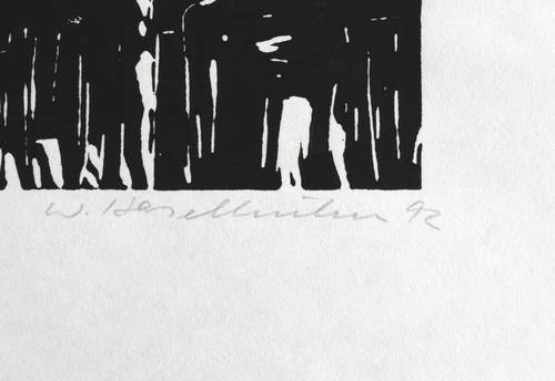 1992. Holzschnitt, in Schwarz, auf hellem Japanpapier. – Originale Künstlergrafik, von Werner Haselhuhn. – 32,2 x 24,1 cm (Darstellung / Druckstock), 43 x 35 cm (Blatt).