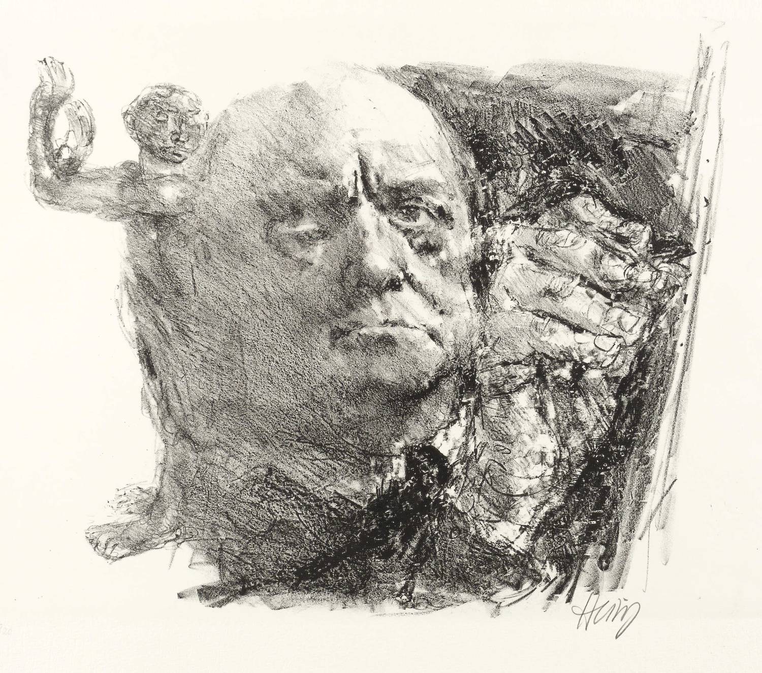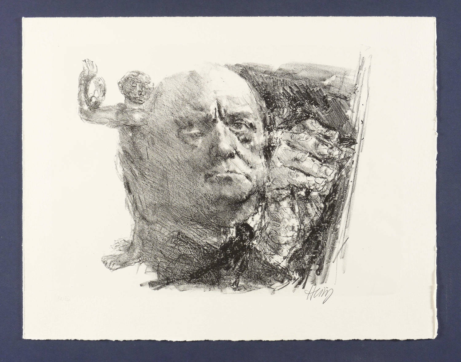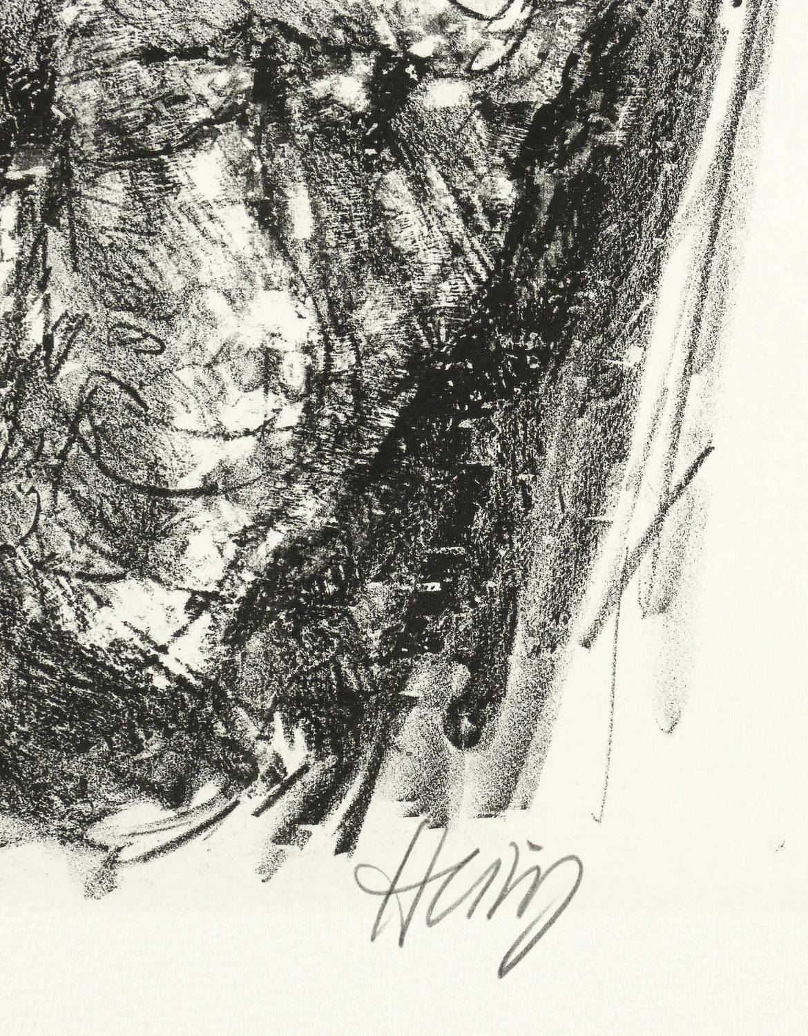 1983. Lithografie / Kreidelithografie, in Schwarz, auf Hahnemühle-Bütten. – Originale Künstlergrafik, von Bernhard Heisig. – Auflage Exemplar Nr. 53/120. – 30,5 x 36,5 cm (Darstellung / Druckbild), 30,5 x 42,0 cm (Stein), 39,5 x 50,5 cm (Blatt).