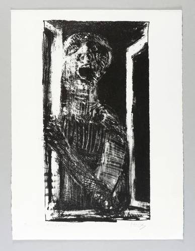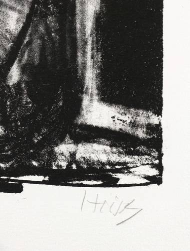 1974/1975. Lithografie / Kreide- & Pinsellithografie, partiell geschabt, in Schwarz, auf Hahnemühle-Bütten. – Von Bernhard Heisig. – 47,5 x 25,1 cm (Darstellung / Stein), 54 x 41 cm (Blatt).