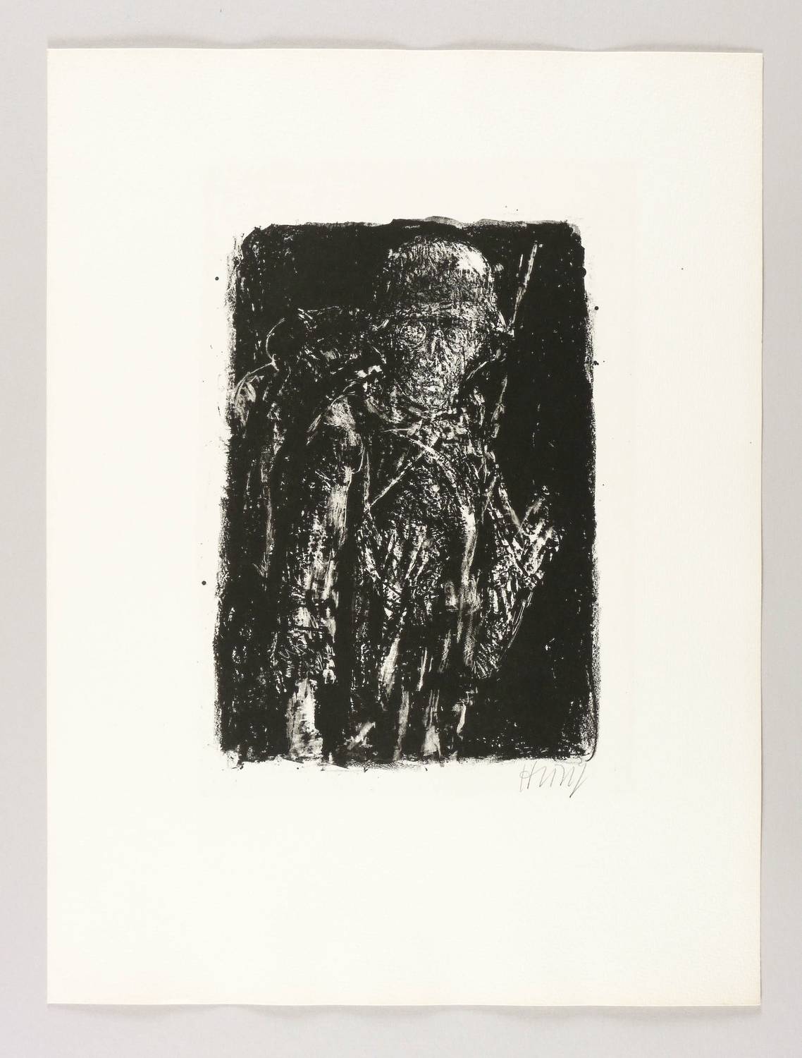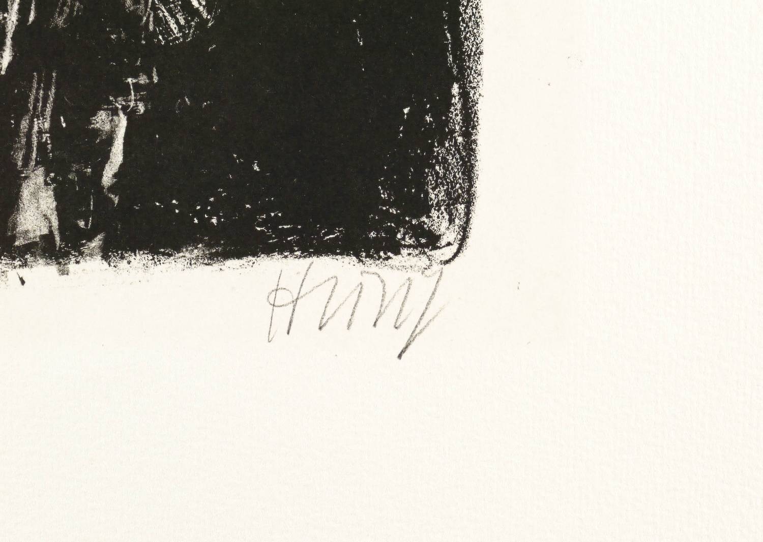 1976-1978. Lithografie / Kreide- & Pinsellithografie, partiell geschabt, in Schwarz, auf hartem chamois Velin. – Originale Künstlergrafik, von Bernhard Heisig. – Auflage 70 Exemplare. – 27,9 x 20,0 cm (Darstellung / Druckbild), 32,0 x 22,0 cm (Stein), 48 x 36 cm (Blatt).