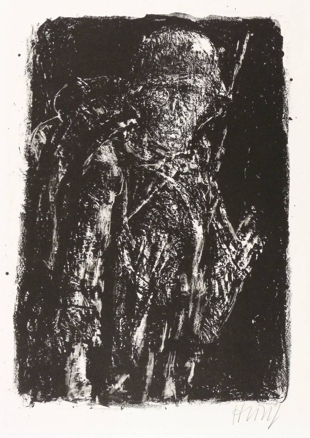 Heisig, Bernhard. – Krieg (24 Lithografien zu Ludwig Renn). – Blatt 6. – „Ohne Titel (Stehender Soldat)”.