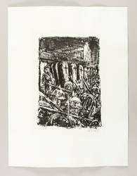 1976-1978. Lithografie / Kreide- & Pinsellithografie, partiell geschabt, in Schwarz, auf hartem hellchamois Velin. – Originale Künstlergrafik, von Bernhard Heisig. – Auflage 70 Exemplare. – 28,3 x 20,3 cm (Darstellung / Druckbild), 31,5 x 22,5 cm (Stein), 48 x 37 cm (Blatt).