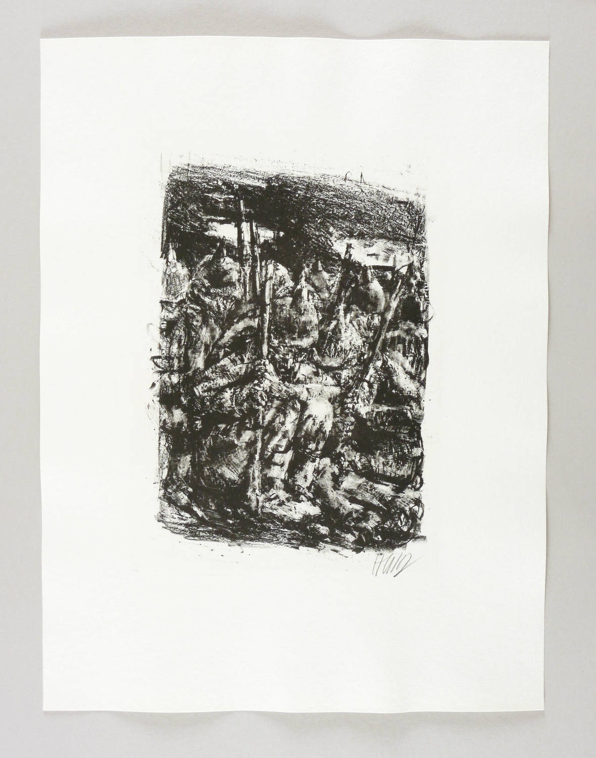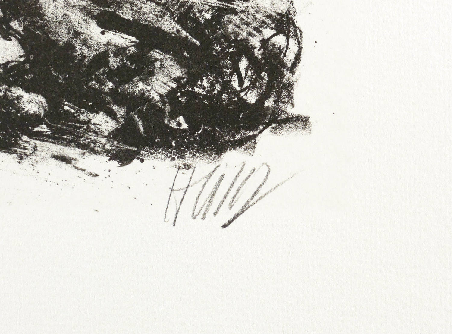 1976-1978. Lithografie / Kreidelithografie, partiell geschabt, in Schwarz, auf hartem chamois Velin. – Originale Künstlergrafik, von Bernhard Heisig. – Auflage 70 Exemplare. – 29,2 x 20,6 cm (Darstellung / Druckbild), 31,0 x 22,5 cm (Stein), 48 x 37 cm (Blatt).