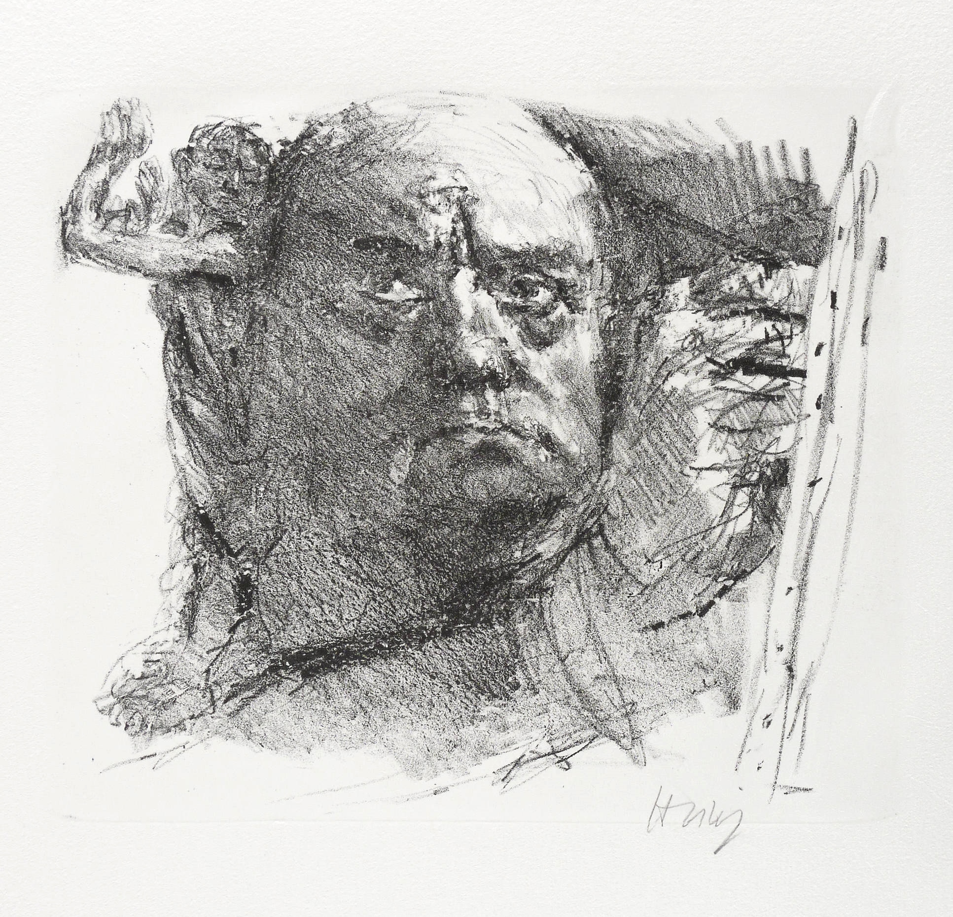 Rechts unten in Bleistift signiert: ″Heisig″. – Etwas kleinere und kompositorisch dichter aufgefasste Variante zur Lithografie ″Max Beckmann″ (1983, 30,5 x 36,5 cm). – Sehr guter Zustand.