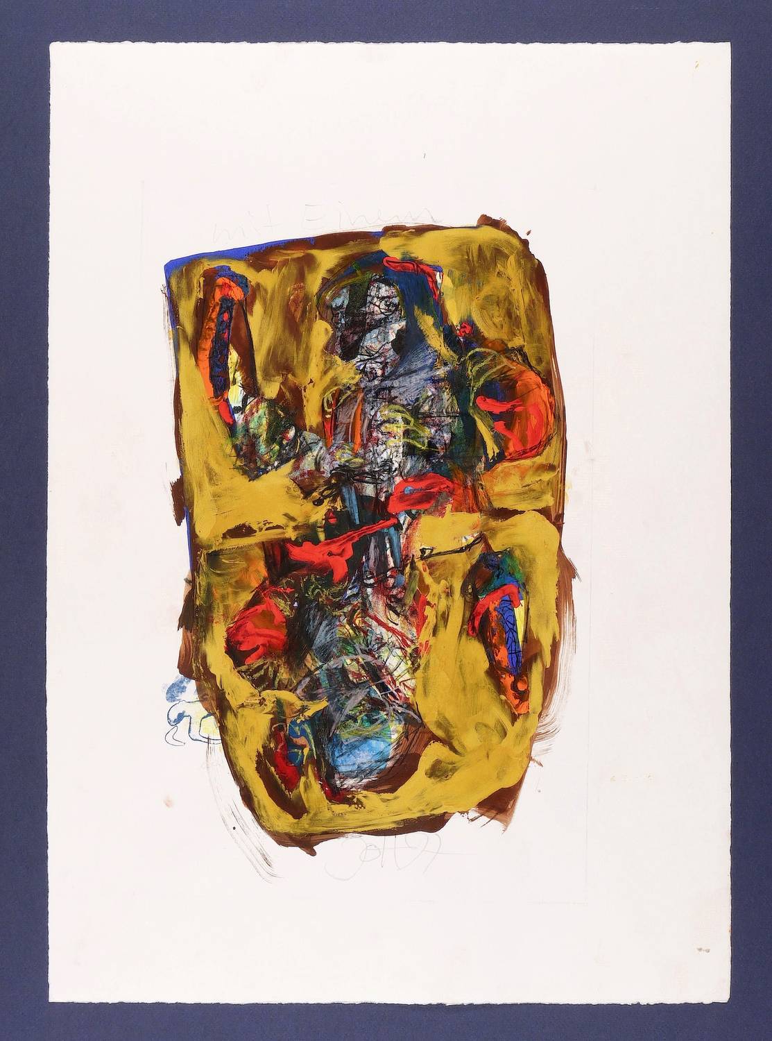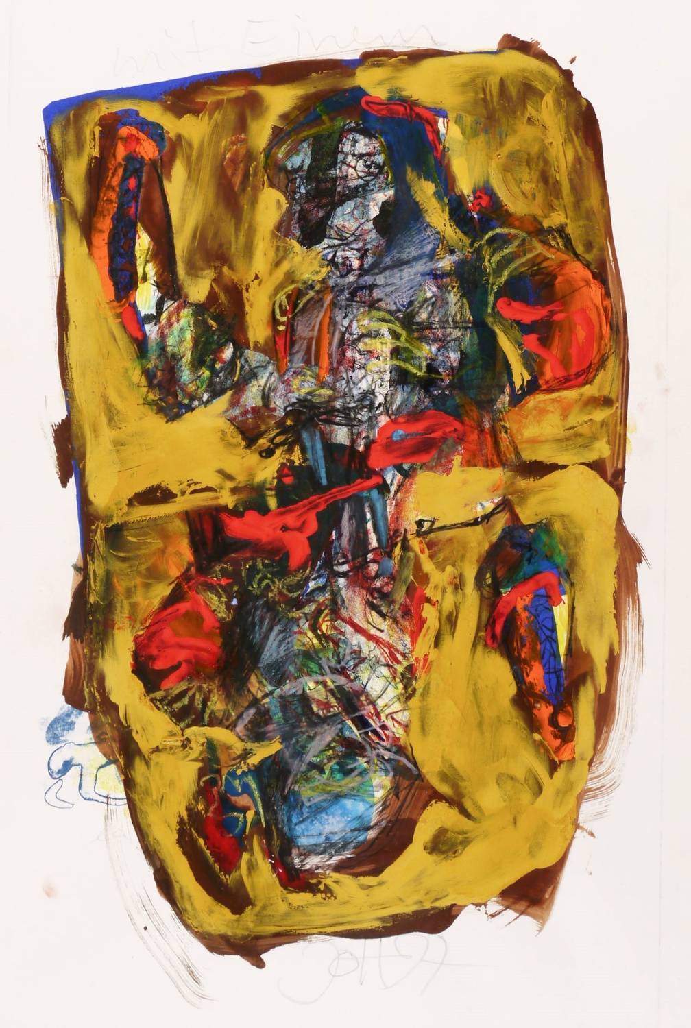 1997. Mischtechnik / Gouache & Ölfarben, über Farblithografie, auf Hahnemühle-Bütten. – Originale Künstlergrafik, von Johannes Heisig. – Unikat. – 44,0 x 28,0 cm (Darstellung), 70 x 50 cm (Passepartout).
