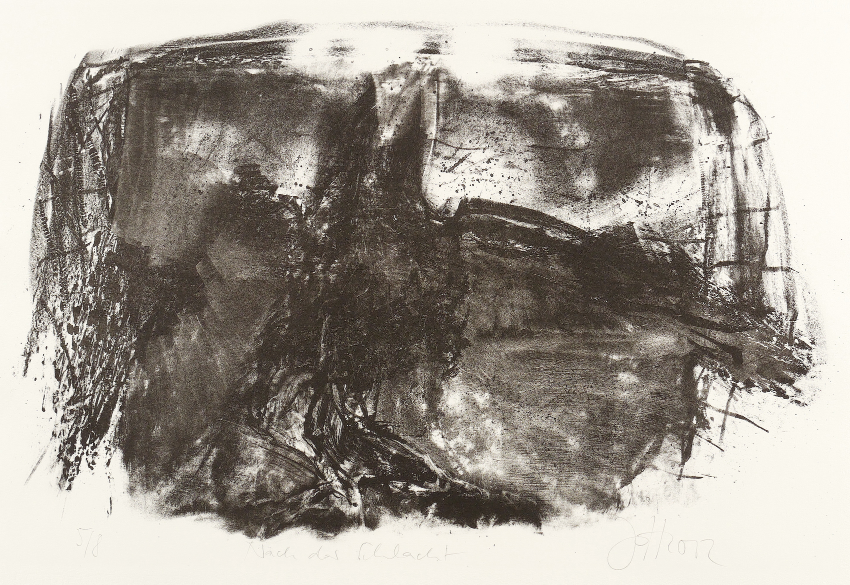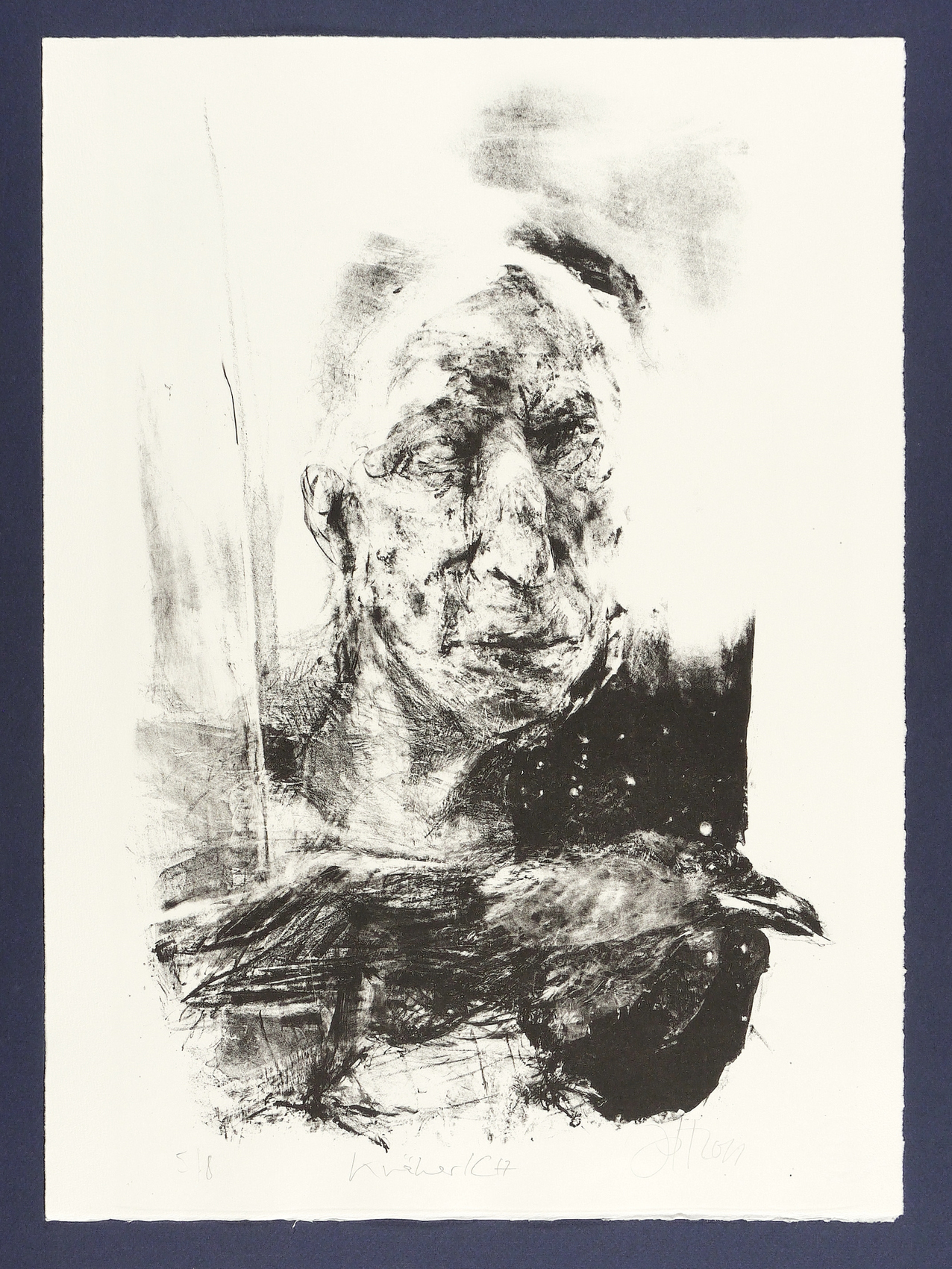 Jedes Blatt in Bleistift signiert und datiert. Dazu jeweils betitelt und nummeriert. – Zum Gedichtband ″Crow. From the Life and the Songs of the Crow″ (1970) des englischen Dichters Ted Hughes. - Herausragendes druckgrafisches Werk von Johannes Heisig. – Die einzelnen Blätter inklusive die leinengebundene Mappe in tadellosem Zustand.