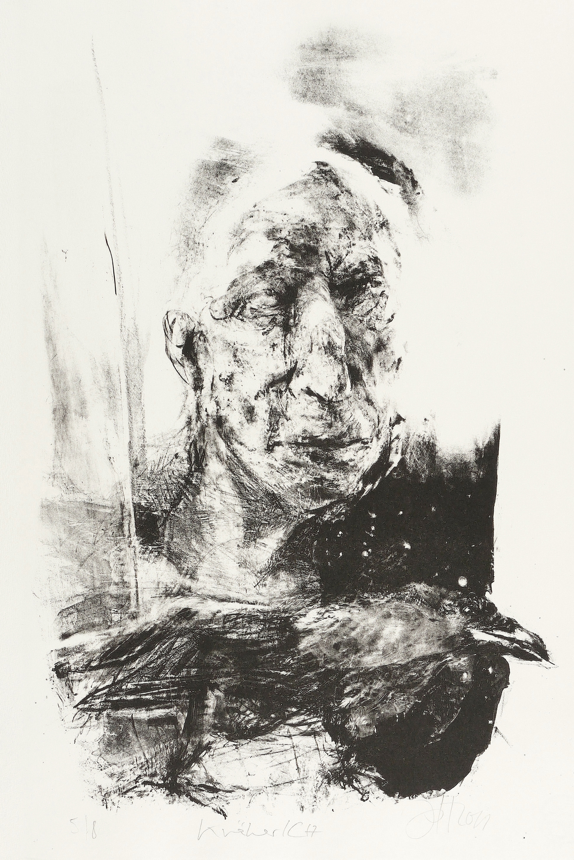 2012. Lithografie / Kreide- & Pinsellithografie, 11 Blatt, in Schwarz, auf Hahnemühle. – Mappenwerk, von Johannes Heisig. – Auflage Exemplar Nr. 5/8. – 53,5 x 39 cm (Blätter), 56 x 42 cm (Mappe).