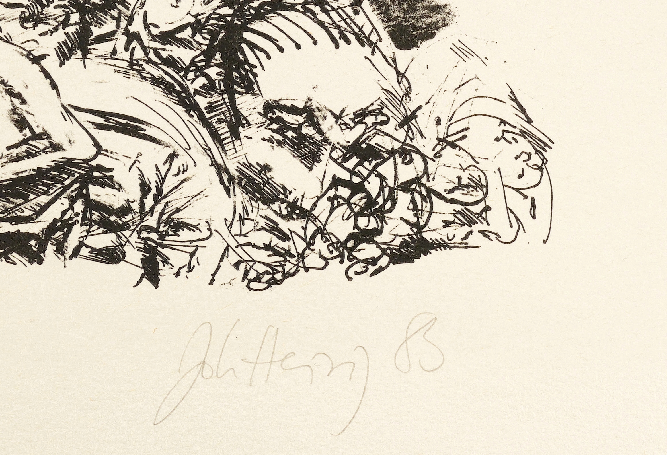 1983. Lithografie / Kreidelithografie, auf Hahnemühle-Bütten. – Originale Künstlergrafik, von Johannes Heisig. – Auflage Exemplar Nr. 30/120. – 47,0 x 26,5 cm (Darstellung), 53 x 40 cm (Blatt).