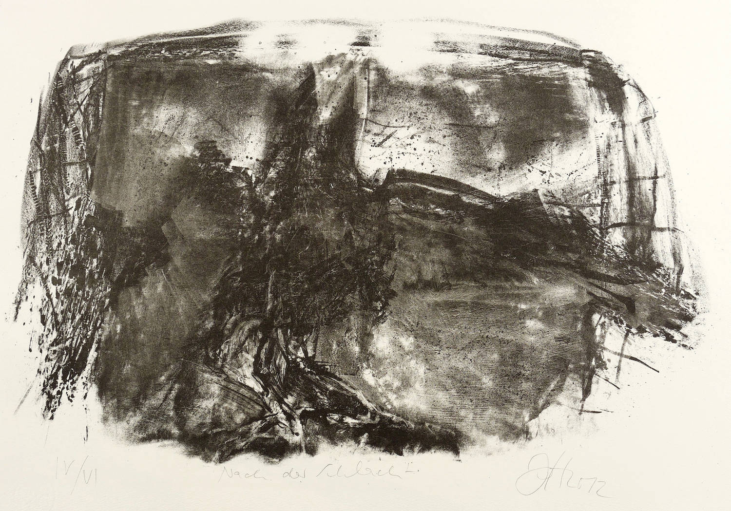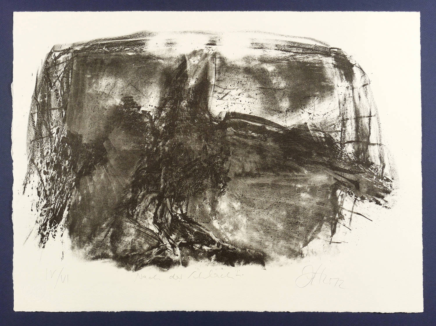 Rechts unten in Bleistift signiert und datiert. Links Auflagenbezeichnung und Titel. – Zum Gedichtband ″Crow. From the Life and the Songs of the Crow″ (1970) des englischen Dichters Ted Hughes. - Herausragendes druckgrafisches Werk von Johannes Heisig. – Sehr guter Zustand. Ohne Mangel.