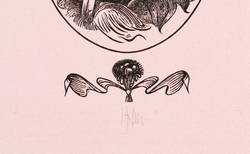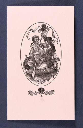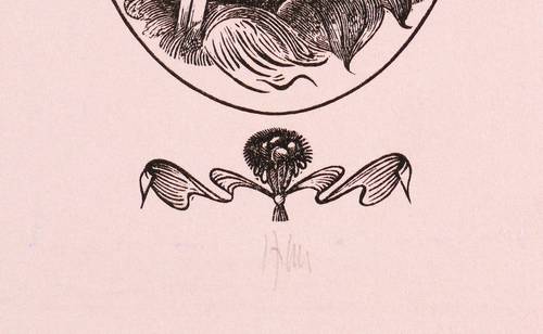 1970. Holzstich, in Schwarz, auf hellrosa Karton. – Originale Künstlergrafik, von Karl-Georg Hirsch. – 9,5 x 5,2 cm (Darstellung / Druckbild), 15 x 9 cm (Blatt).