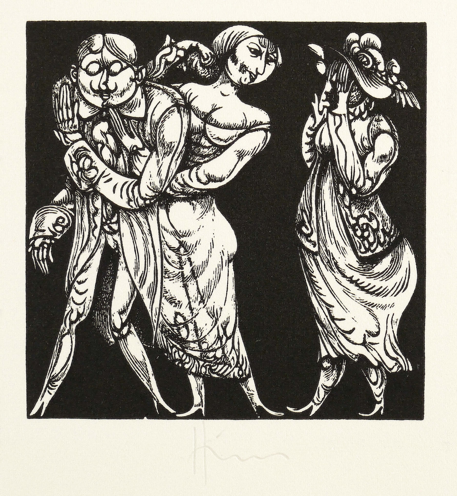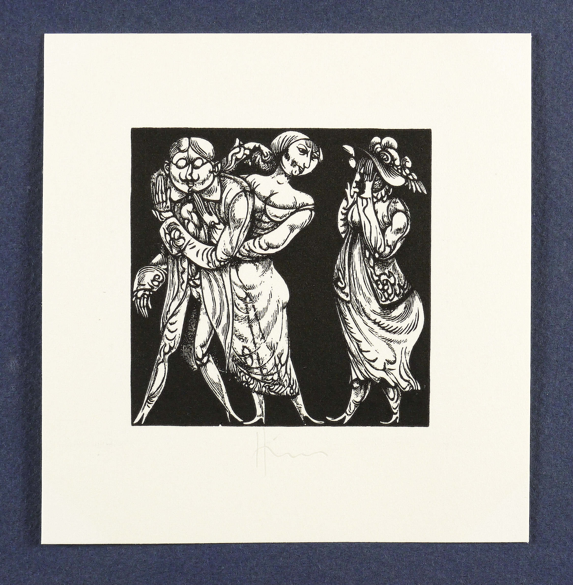 1974. Holzstich, in Schwarz, auf weißem Karton. – Originale Künstlergrafik, von Karl-Georg Hirsch. – 6,0 x 6,0 cm (Darstellung / Einfassungslinie), 11 x 10 cm (Blatt).