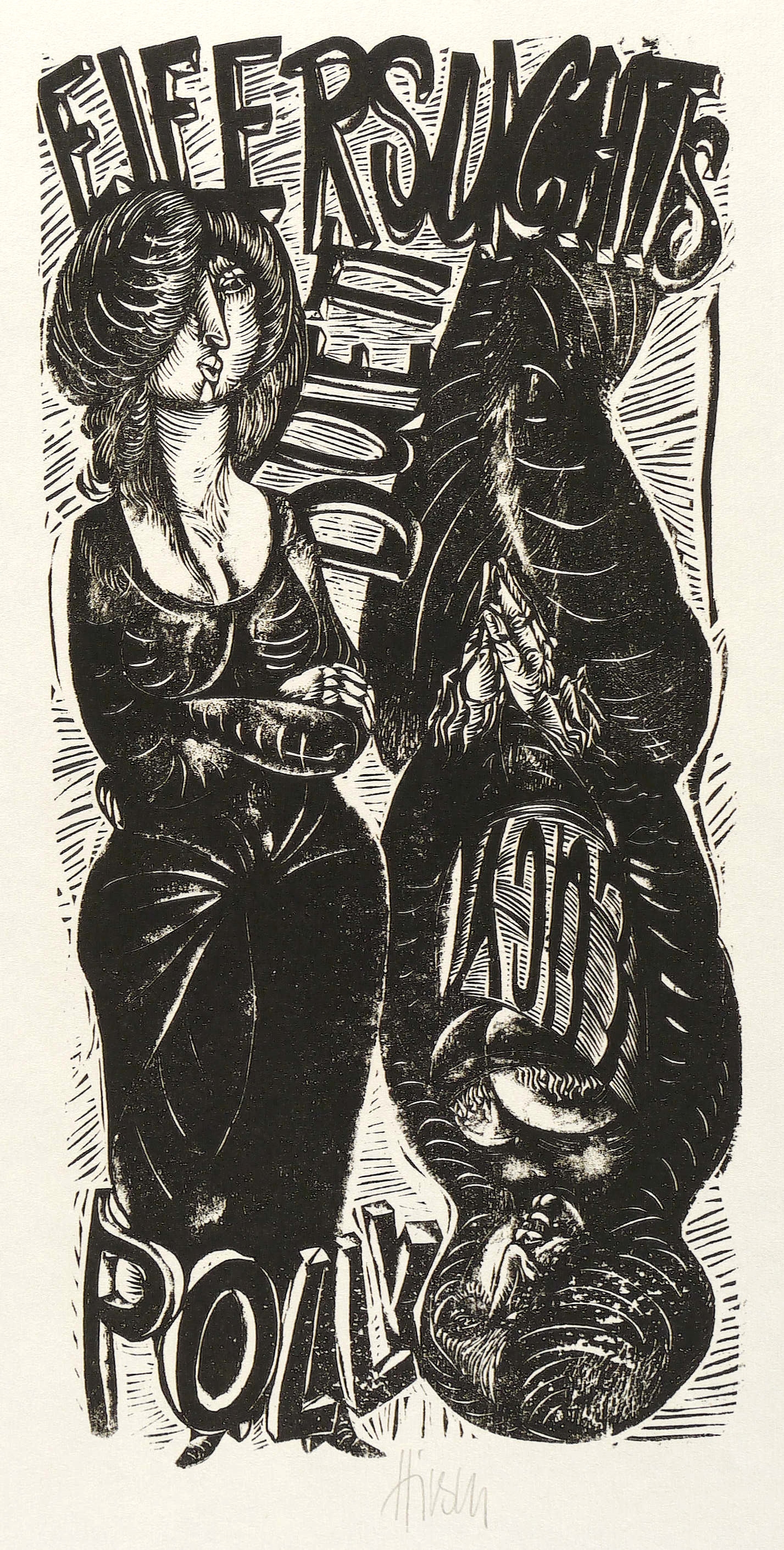 Aus: Karl-Georg Hirsch, Die Dreigroschenoper. 10 Holzschnitte (Leipzig: 1971). – Unterhalb in Bleistift signiert. Im Druckstock die Inschrift: ″EIFERSUCHTS DUETT // POLLY // LUCY″. Verso Stempel der Plauener Grafikgemeinschaft. – Tadellos. Ausgezeichnet erhalten.
