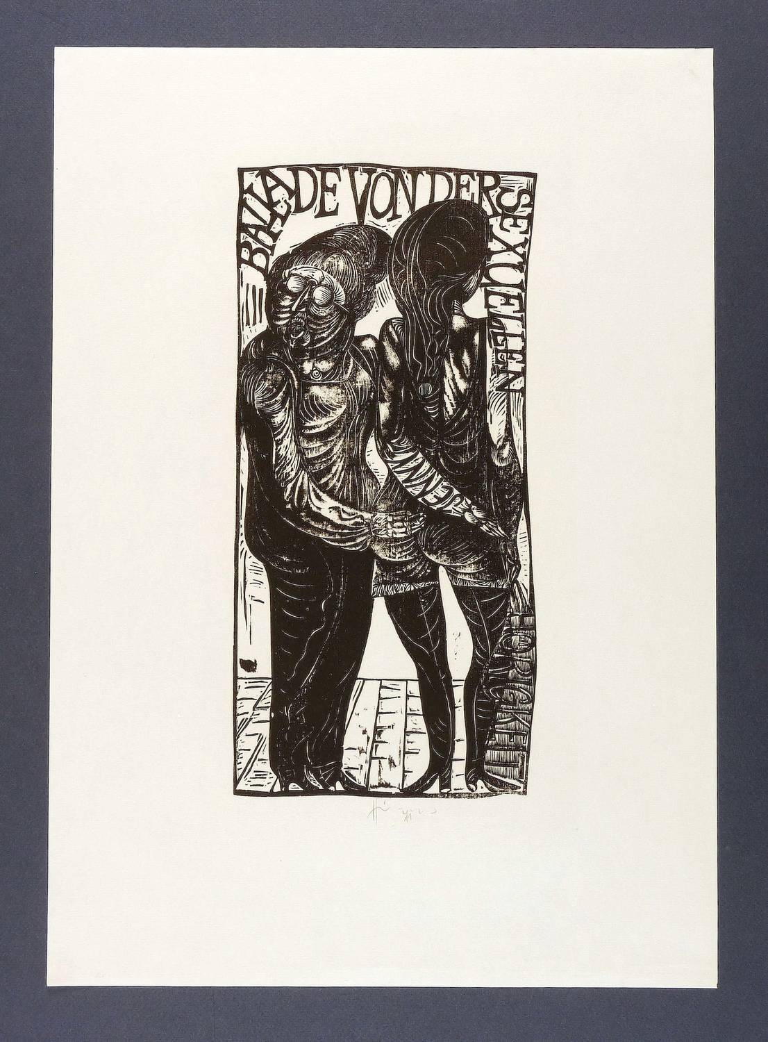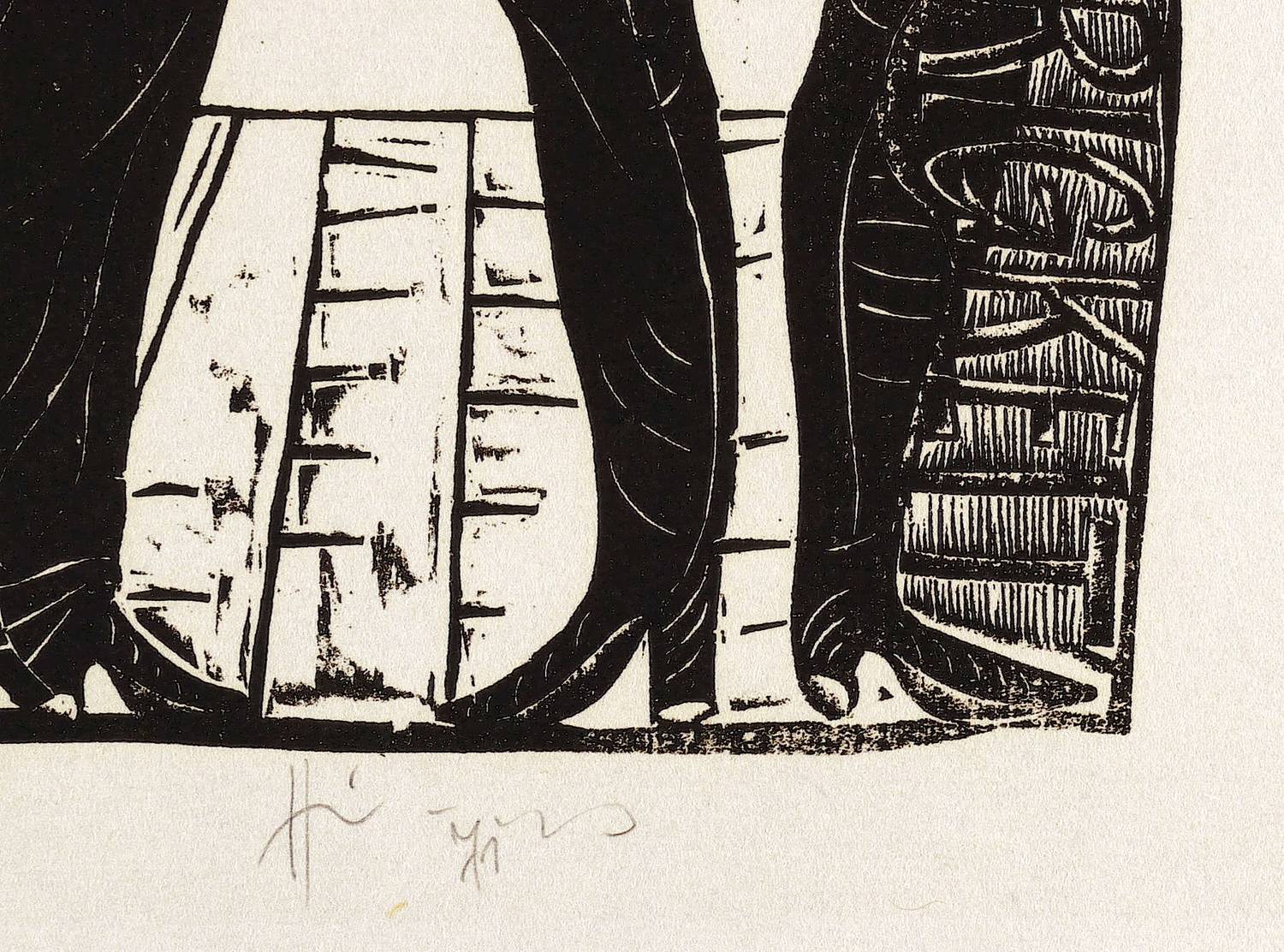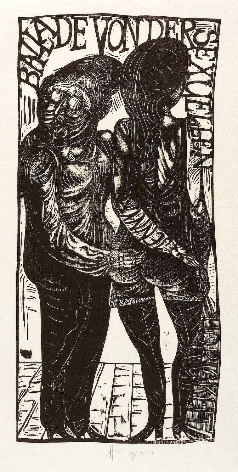 Aus: Karl-Georg Hirsch, Die Dreigroschenoper. 10 Holzschnitte (Leipzig: 1971). – Unterhalb in Bleistift signiert und datiert. Im Druckstock Inschrift mit dem Liedtitel und dem Namenszug: ″Jenny″. – Sehr gut erhalten.
