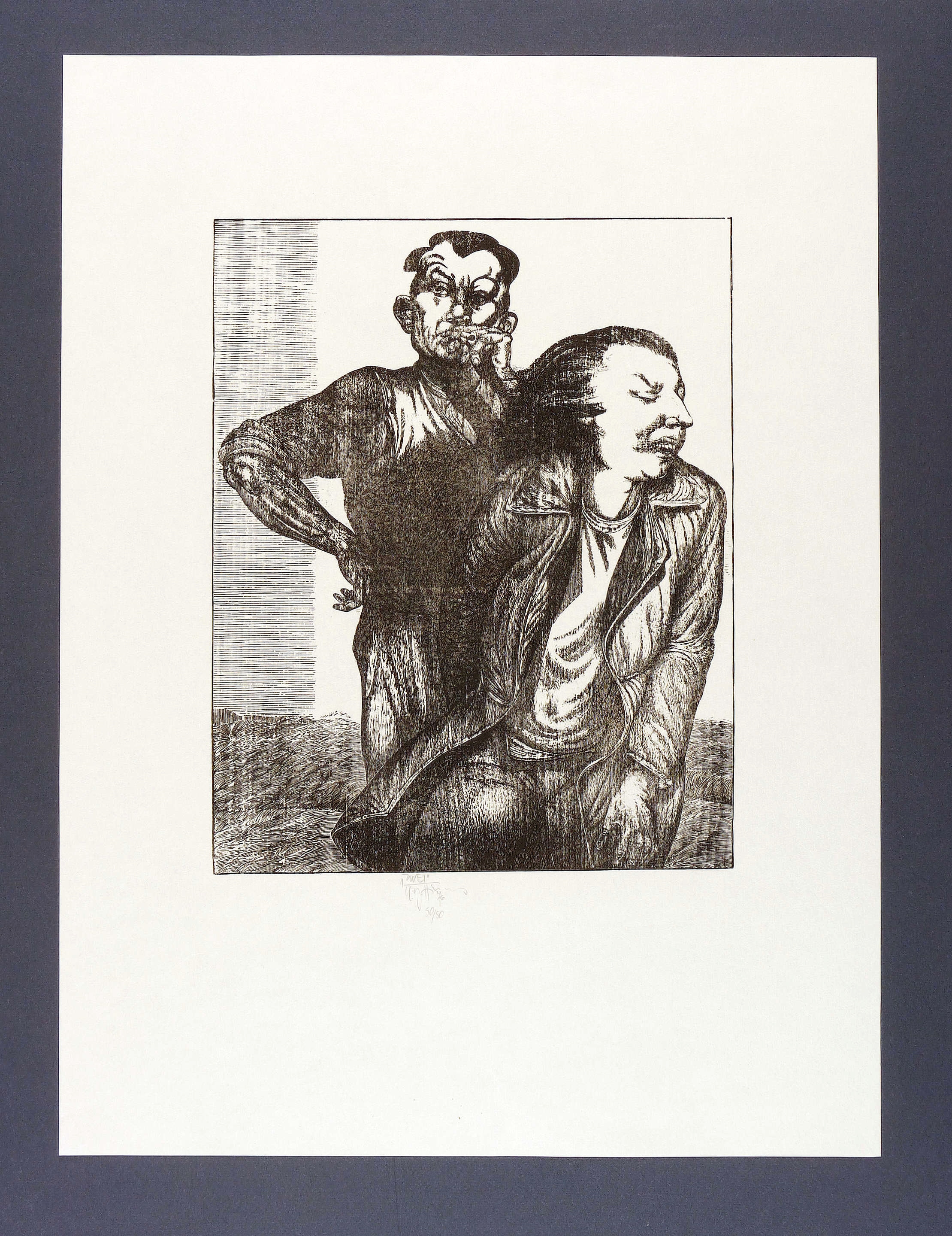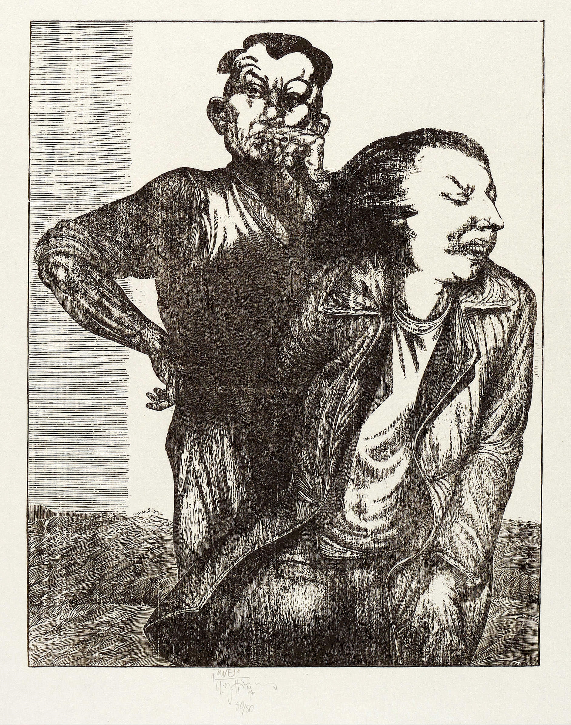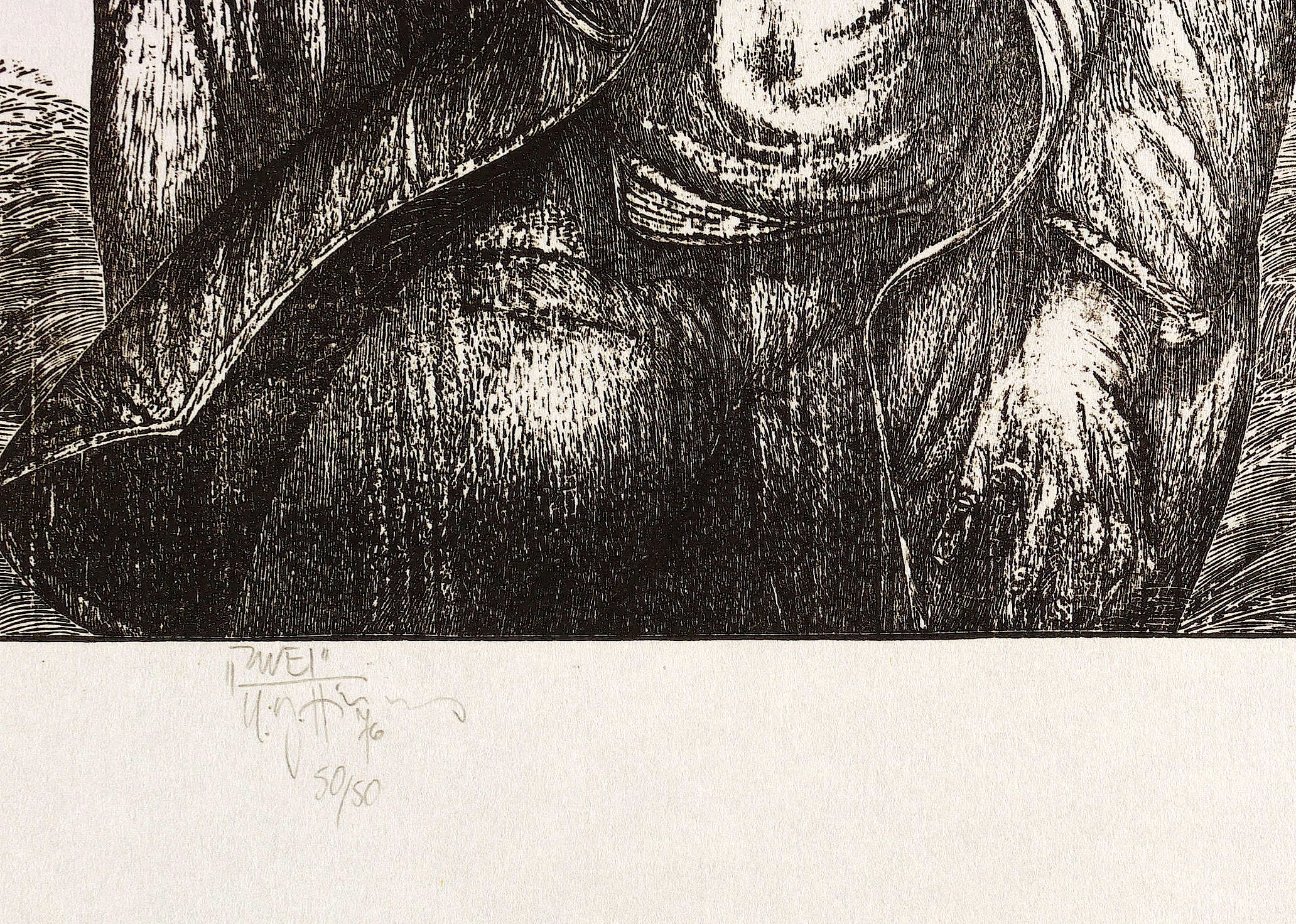 1976. Holzschnitt, in Schwarz, auf rauem weißlichem Japanbütten. – Originale Künstlergrafik, von Karl-Georg Hirsch. – Auflage Exemplar Nr. 50/50. – 32,5 x 26,0 cm (Darstellung / Druckstock), 55 x 41 cm (Blatt).