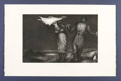 1987. Radierung / Strichätzung & Aquatinta, in Schwarz, auf chamois Hahnemühle-Bütten. – Von Karl-Georg Hirsch. – Auflage Exemplar Nr. 66/75. – 24,7 x 38,1 cm (Darstellung / Platte), 36,5 x 56 cm (Blatt).