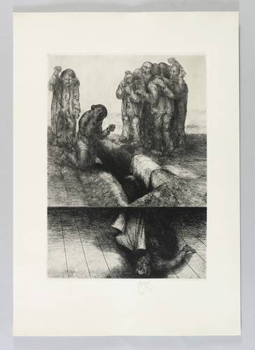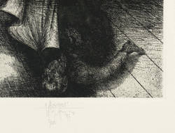 1977. Radierung / Strichätzung, mit Plattenton, in Schwarz, auf Karton. – Von Karl-Georg Hirsch. – Auflage Exemplar Nr. 3/50. – 33,5 x 24,0 cm (Darstellung / Platte), 48 x 34 cm (Blatt).