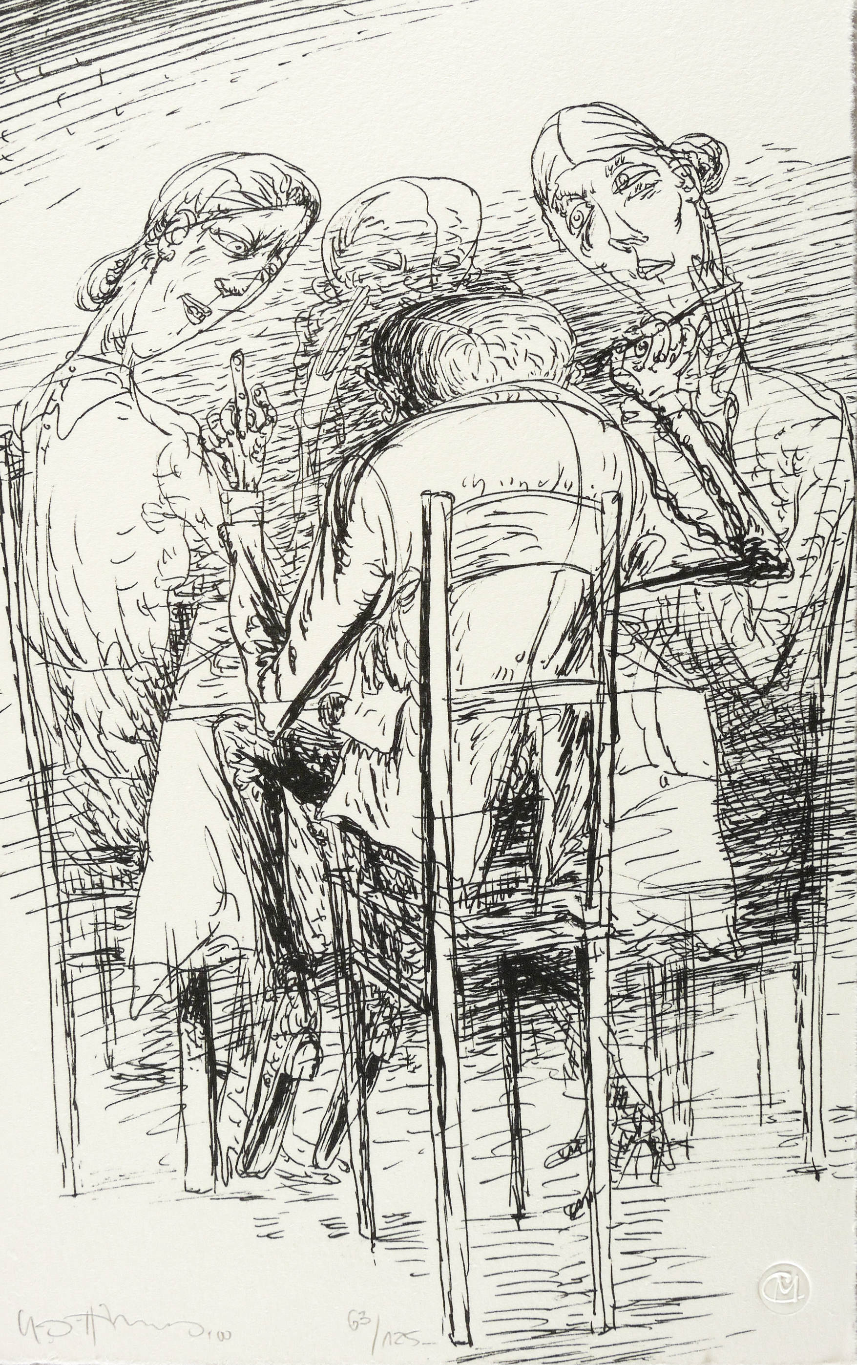2000. Offsetlithografie / Federlithografie, in Schwarz, auf weißem Velin. – Von Karl-Georg Hirsch. – Auflage Exemplar Nr. 63/125. – 22,0 x 13,9 cm (Darstellung / Blatt).