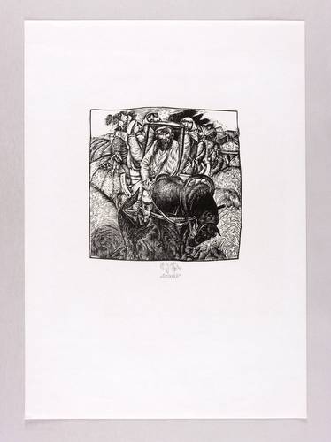 Karl-Georg Hirsch (*1938 Breslau, lebt und arbeitet bei Leipzig). Deutscher Grafiker. Lehre und Tätigkeit als Stuckateur. 1960-65 Studium an der Hochschule für Grafik und Buchkunst Leipzig (HGB). Ab 1965 freischaffend. 1967–70 Assistent an der HGB, seit 1970 Leiter der Werkstatt Holzschnitt, seit 1976 Dozent ebenda. 1981/82 Gastdozent für Holzschnitt und Holzstich an der finnischen Universität Jyväskylä. 1989 Berufung zum Professor für Grafik und Illustration an der HGB. 1990-97 Prorektor. Bekannt für seinen miniaturhaften, meisterhaft virtuosen Holzschnitt, den man in der DDR ob seiner extremen Schärfe und Kleinteiligkeit unrichtig als Holzstich bezeichnete.