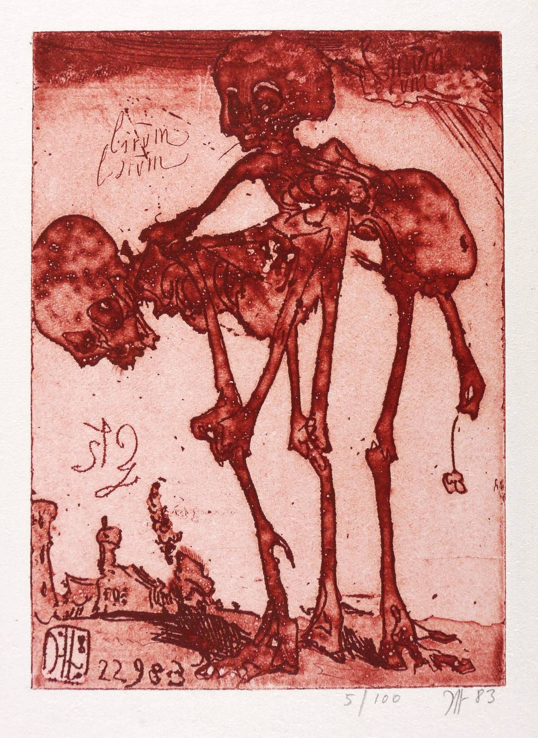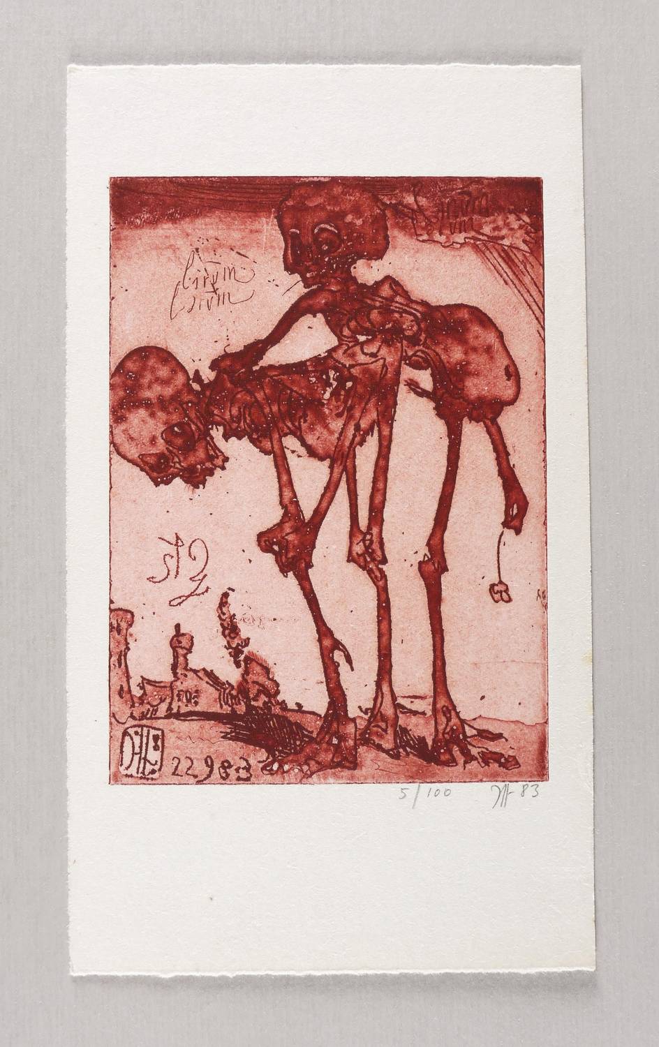 1983. Radierung / Strichätzung, Aquatinta & Kaltnadel, in Korallenrot, auf hellchamois Velin. – Originale Künstlergrafik, von Horst Janssen. – Auflage Exemplar Nr. 5/100. – 15,8 x 11,4 cm (Darstellung / Platte), 24 x 14 cm (Blatt).