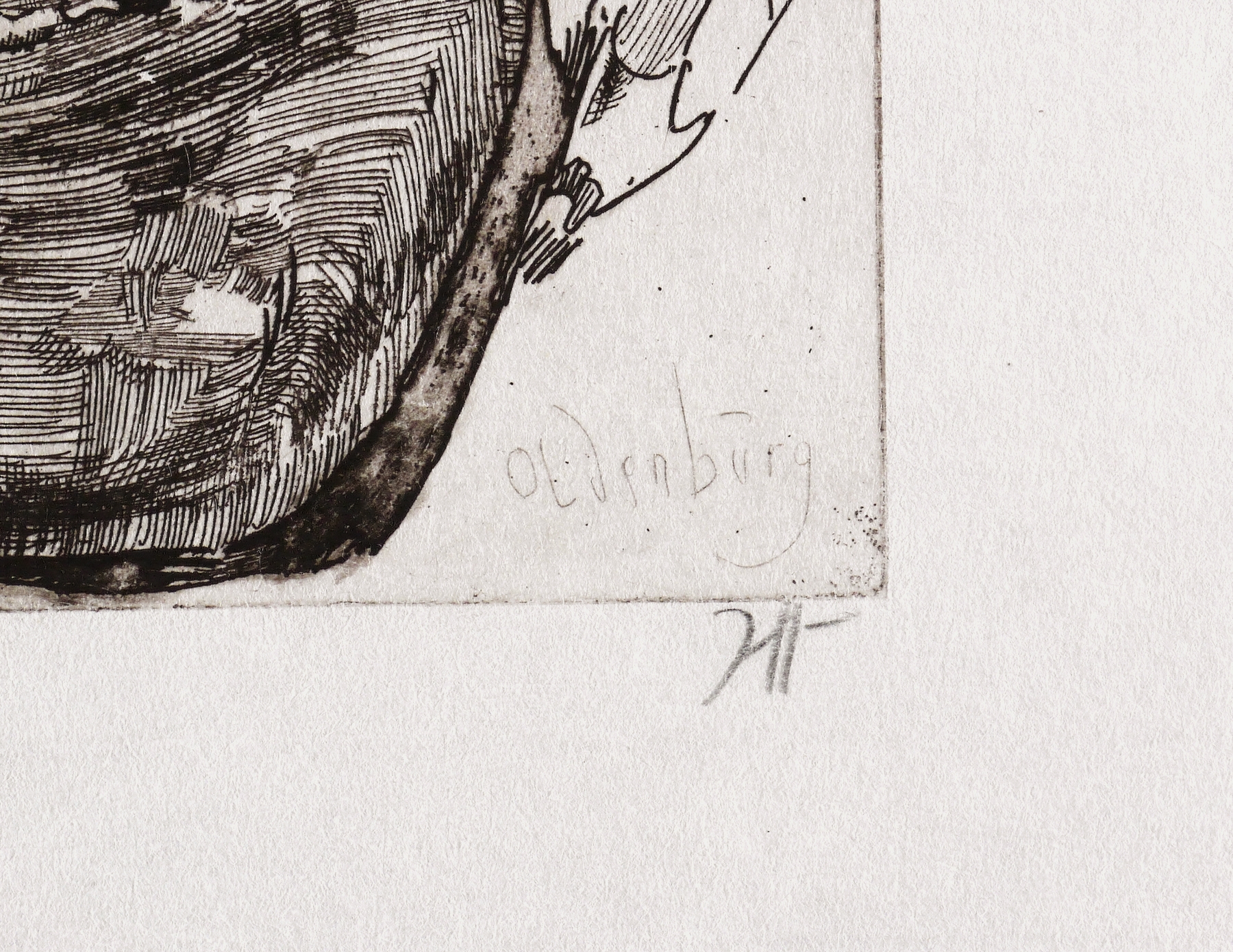 1982. Radierung / Strichätzung & Kaltnadel, in Schwarz, auf rauem hellchamois Japan. – Originale Künstlergrafik, von Horst Janssen. – 29,5 x 21,0 cm (Darstellung / Platte), 44 x 32 cm (Blatt).