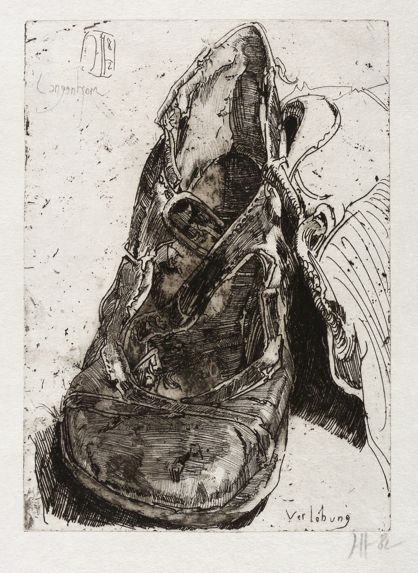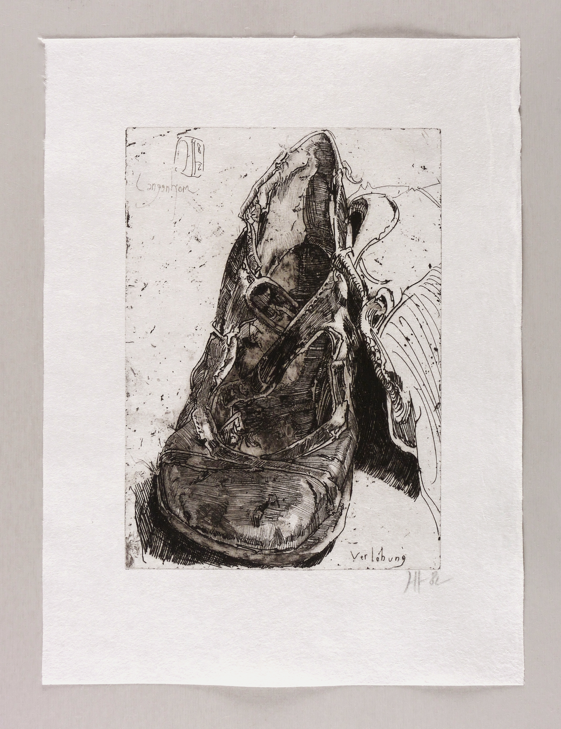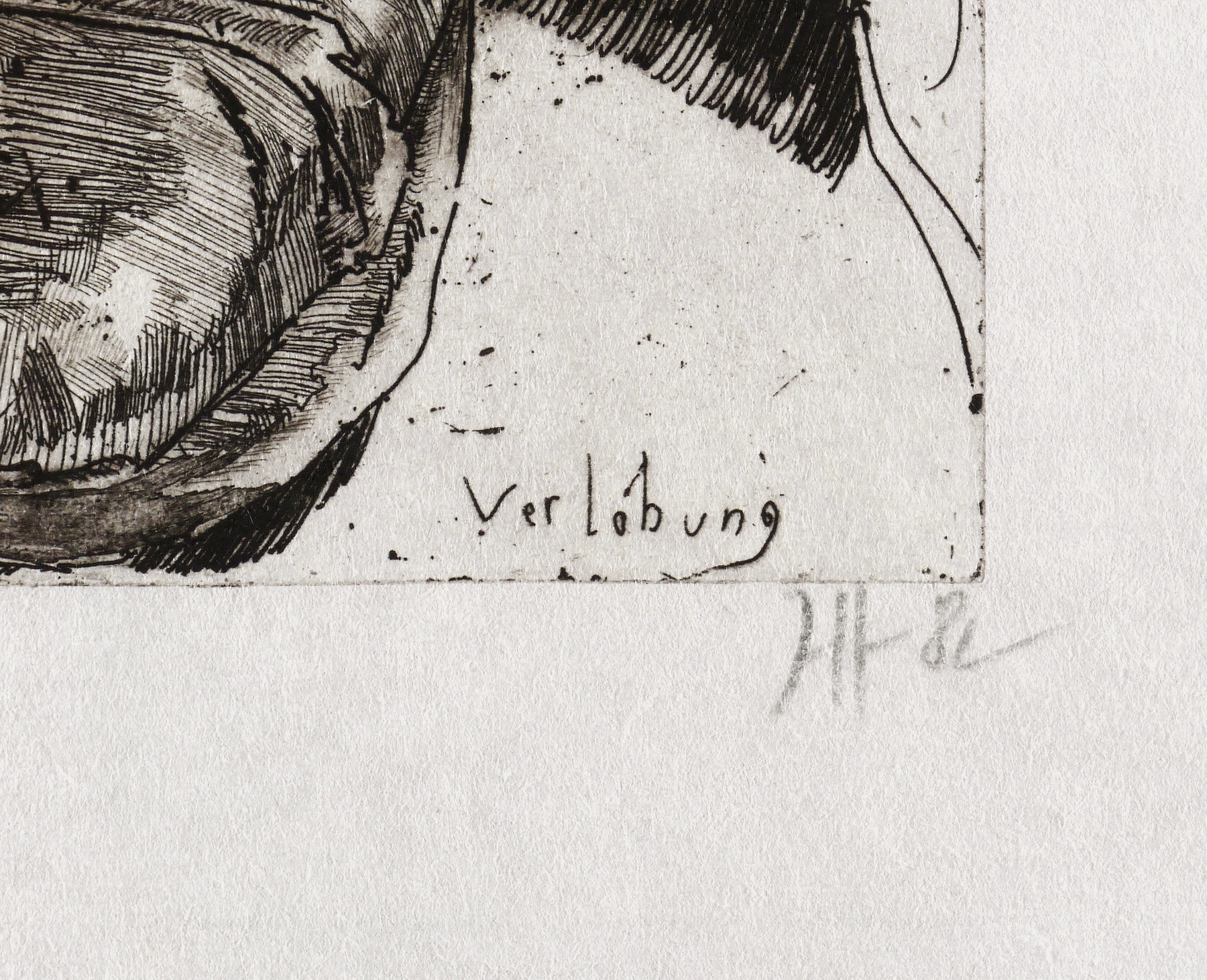 1982. Radierung / Strichätzung, Aquatinta & Kaltnadel, in Schwarz, auf rauem hellchamois Japan. – Originale Künstlergrafik, von Horst Janssen. – 29,5 x 21,0 cm (Darstellung / Platte), 44 x 32 cm (Blatt).