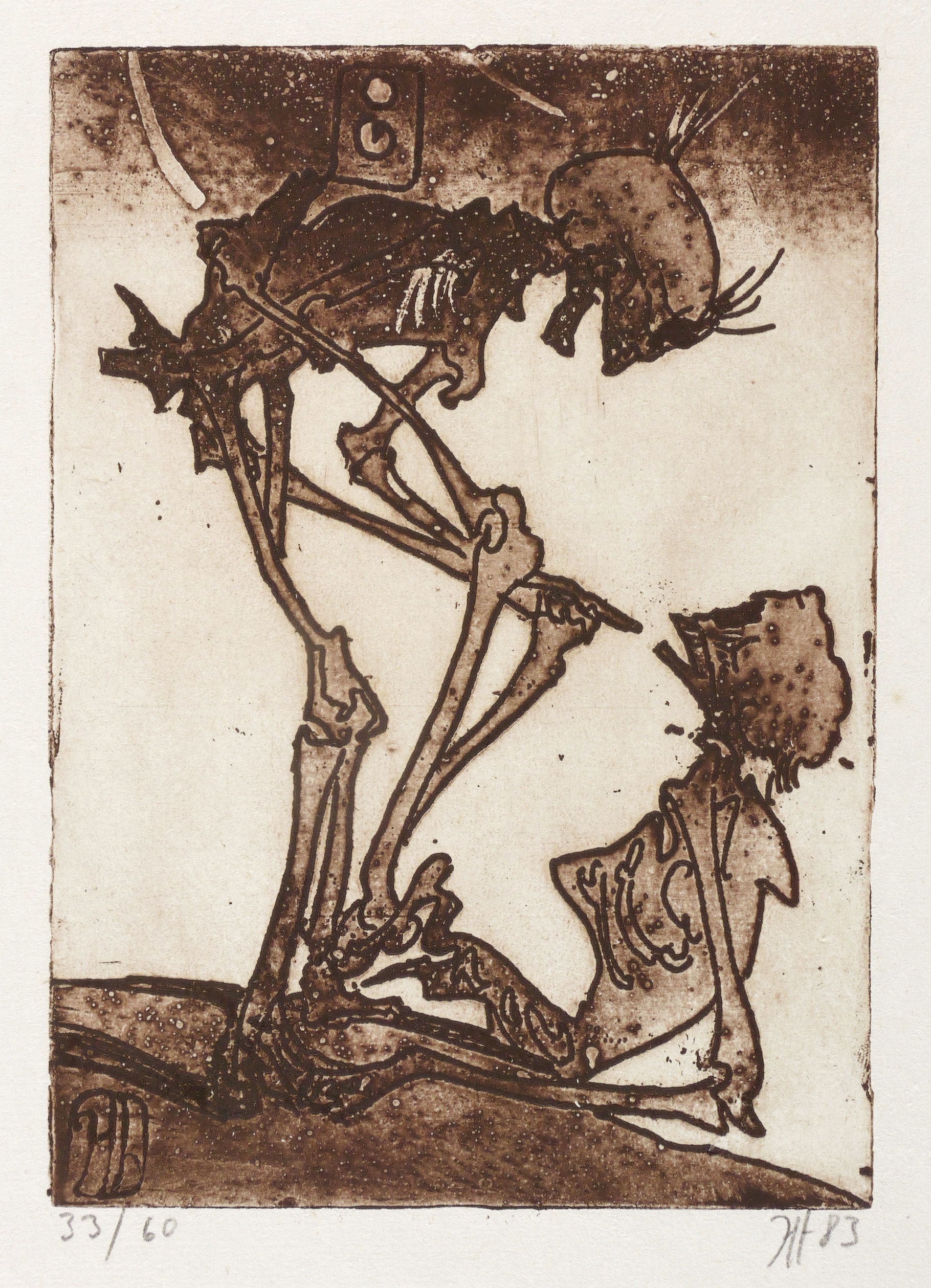 Janssen, Horst. – Pfänderspiel. – „Ohne Titel (Zwei Skelette)”.