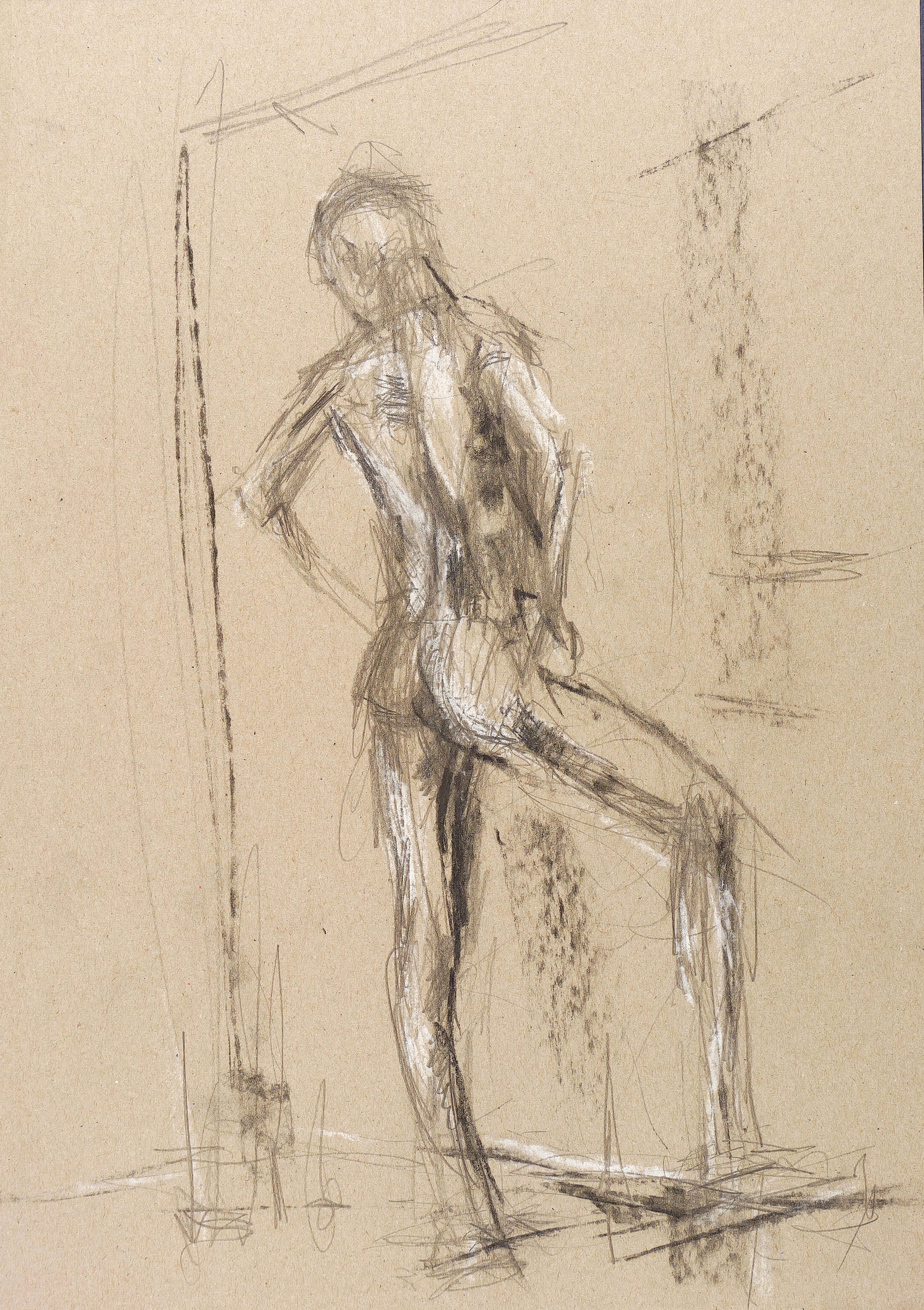 2011. Zeichnung / Kohle über Bleistift, partiell mit Pastellkreide weiß gehöht und gewischt, auf grauem Papier. – Originale Künstlergrafik, von Thomas Jastram. – Unikat. – 42,0 x 29,8 cm (Darstellung / Blatt).
