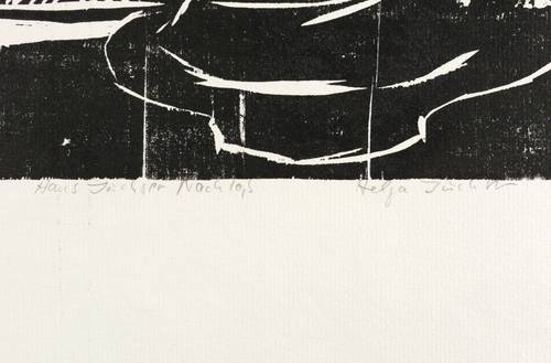 Rechts unten in Bleistift von der Witwe signiert: ″Helga Jüchser″. Links bezeichnet: ″Handdruck V. Hofmann 84″. Weiter: ″Hans Jüchser Nachlaß″. – Abzug vom originalen Holzstock durch den Dresdner Maler und Grafiker Veit Hofmann. – Sehr gut erhalten.