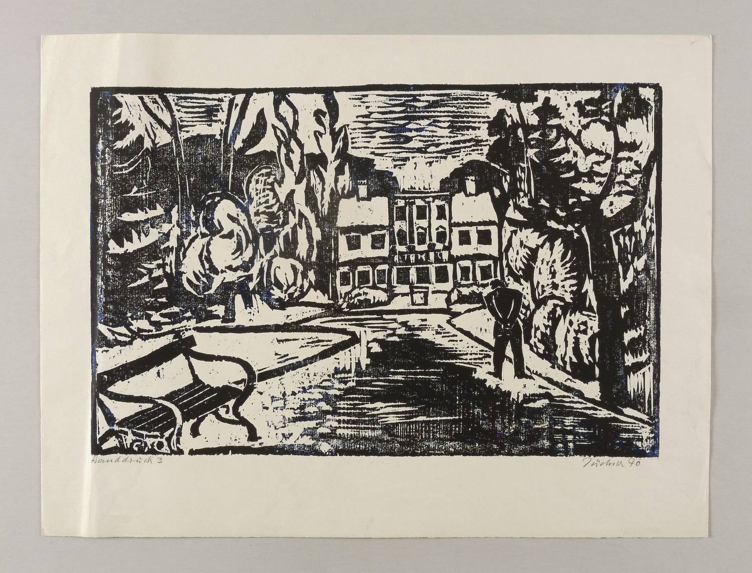 Rechts unten in Bleistift signiert und datiert: ″Jüchser 70″. Links Auflagenbezeichnung: ″Handdruck 3″. – Knickspur im linken Rand. Sonst guter Zustand.