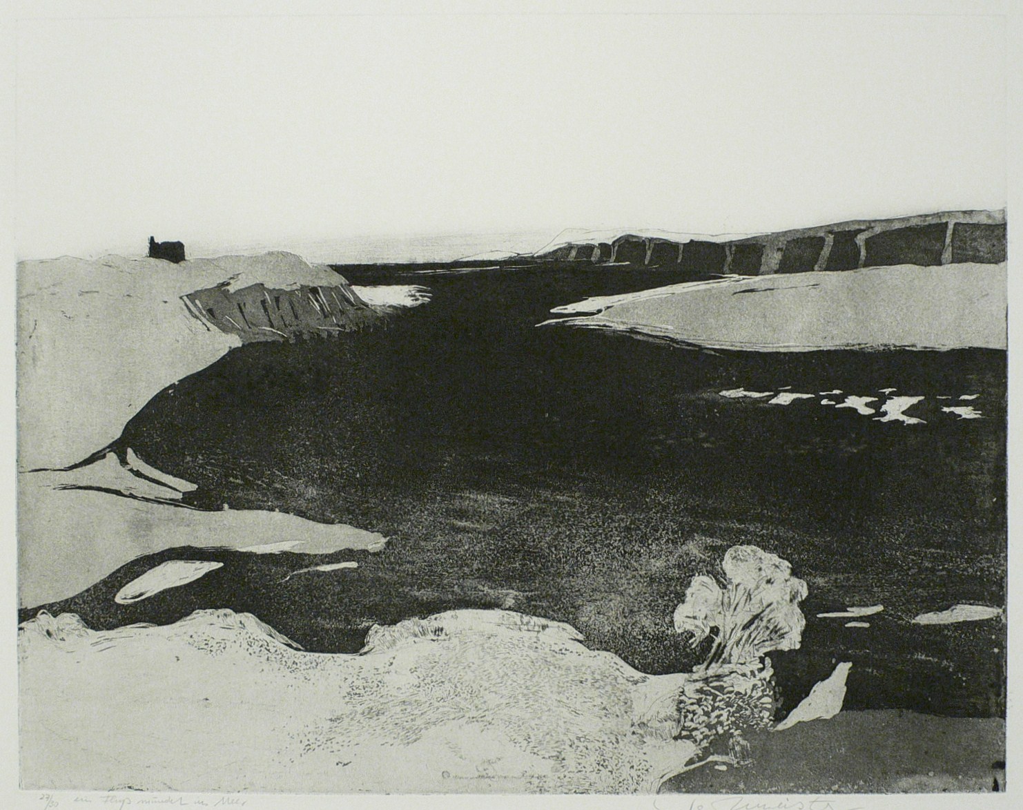 Wolfgang Werkmeister (*1941 Berlin, lebt und arbeitet in Hamburg). Deutscher Grafiker, bedeutender Vertreter der zeitgenössischen Radierkunst. 1960-64 Besuch der Akademie der Bildenden Künste Stuttgart, Fachklasse für freie Grafik und Illustration bei Gunther Böhmer. 1965 Besuch der Fachhochschule für Gestaltung Hamburg bei W. M. Busch und S. Oelke. 1966-68 tätig als Pressezeichner. 1972/73 Dozent an der Fachhochschule für Gestaltung, Hamburg. Zahlreiche Auslanfsaufenthalte und Stipendien in Marokko, USA, auf den Kanarischen Inseln, etc. 2001 Kunstpreis der Stadt Baden-Baden. Zentrales Ausdrucksmittel ist die Radierung, genauer die Aquatinta, in der er Landschaft als Hauptmotiv regelrecht zelebriert und in technisch ebenso aufwändigen wie raffinierten Blättern druckgrafisch umsetzt. Stilistisch siedelt sein Werk zwischen einem geschickt eingesetzten Fotorealismus und der lakonischen Bildsprache eines Ansel Adams.