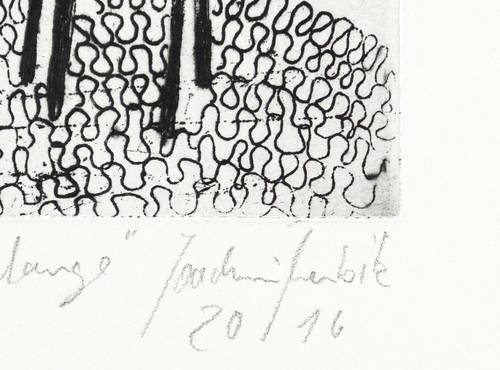 2016. Radierung / Strichätzung, in Schwarz, auf Hahnemühle-Bütten. – Von Joachim Merbitz. – Auflage Exemplar Nr. 8/10. – 20,8 x 14,6 cm (Darstellung / Platte), 39 x 28 cm (Blatt).