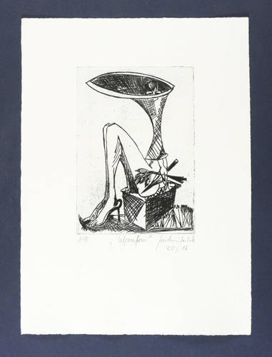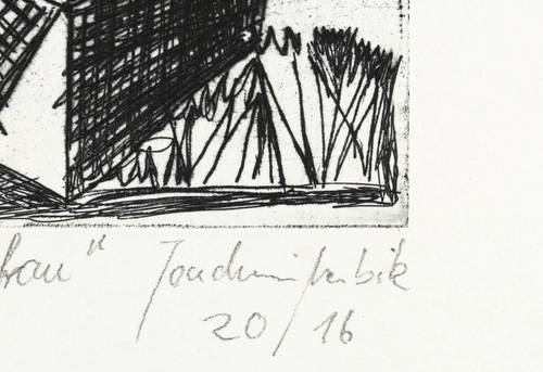 2016. Radierung / Strichätzung & Kaltnadel, in Schwarz, auf Hahnemühle-Bütten. – Von Joachim Merbitz. – Auflage Exemplar Nr. 8/10. – 20,8 x 14,6 cm (Darstellung / Platte), 39 x 28 cm (Blatt).