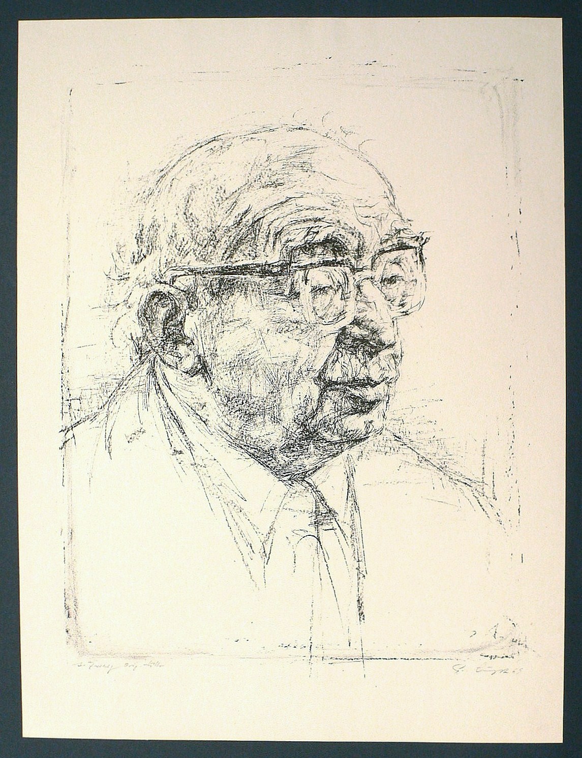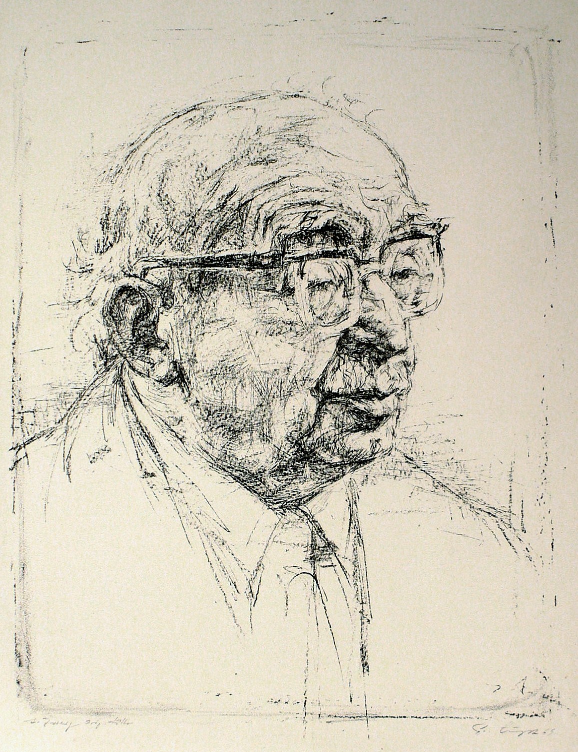 1969. Lithografie / Kreidelithografie, in Schwarz, auf gelblichem Velin. – Originale Künstlergrafik, von Gerhard Augst. – 45,0 x 34,5 cm (Darstellung), 54 x 41 cm (Blatt).