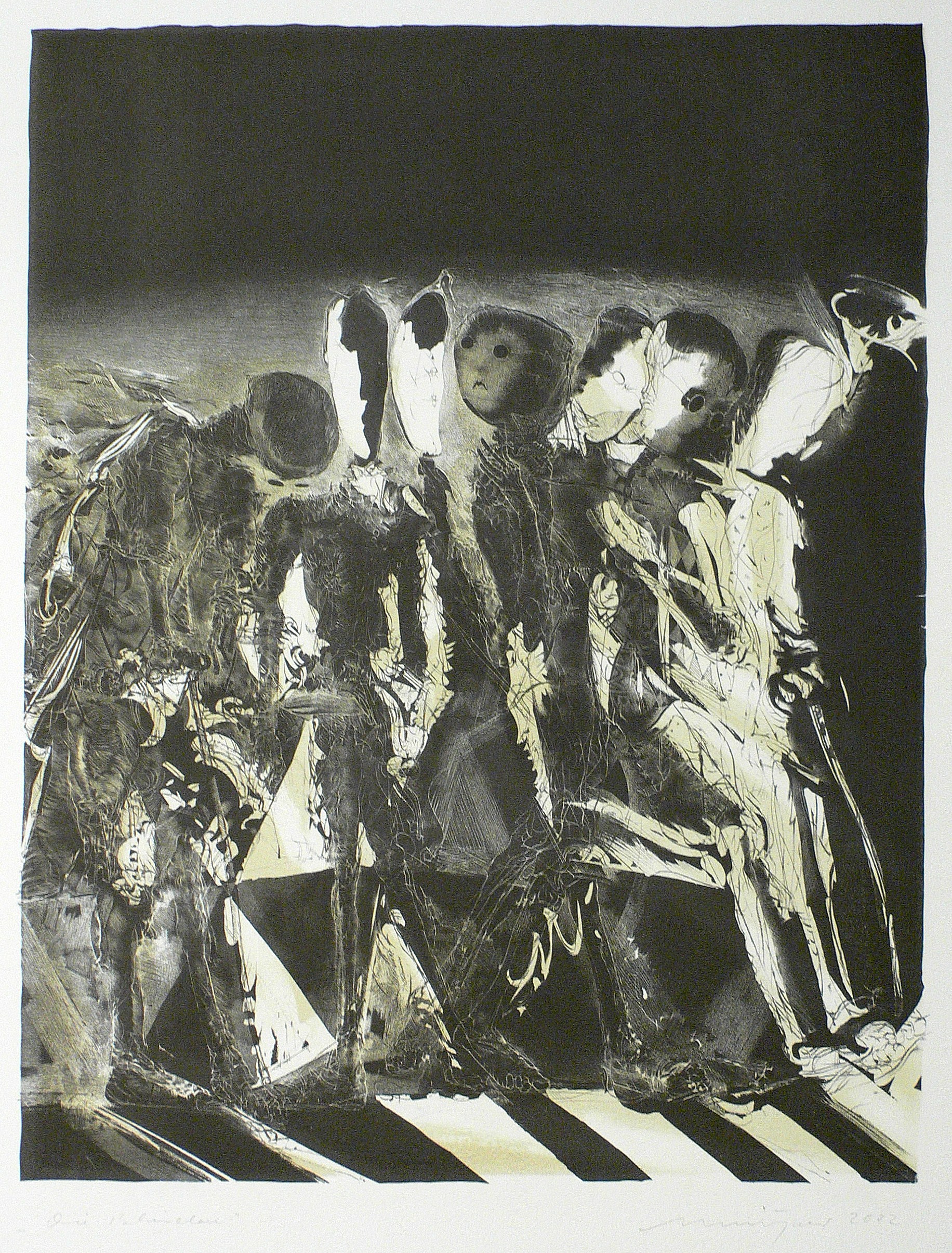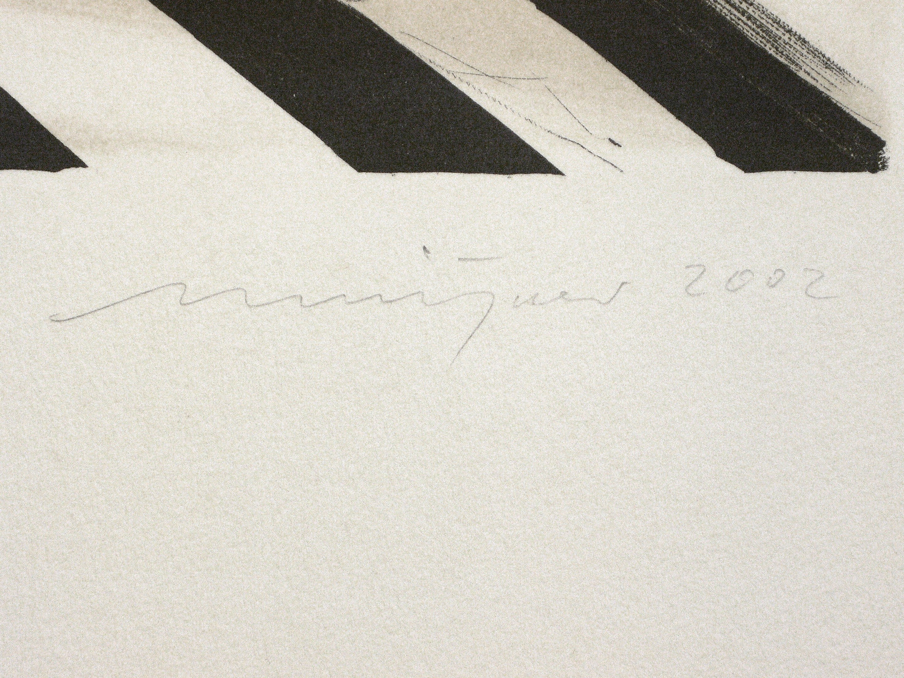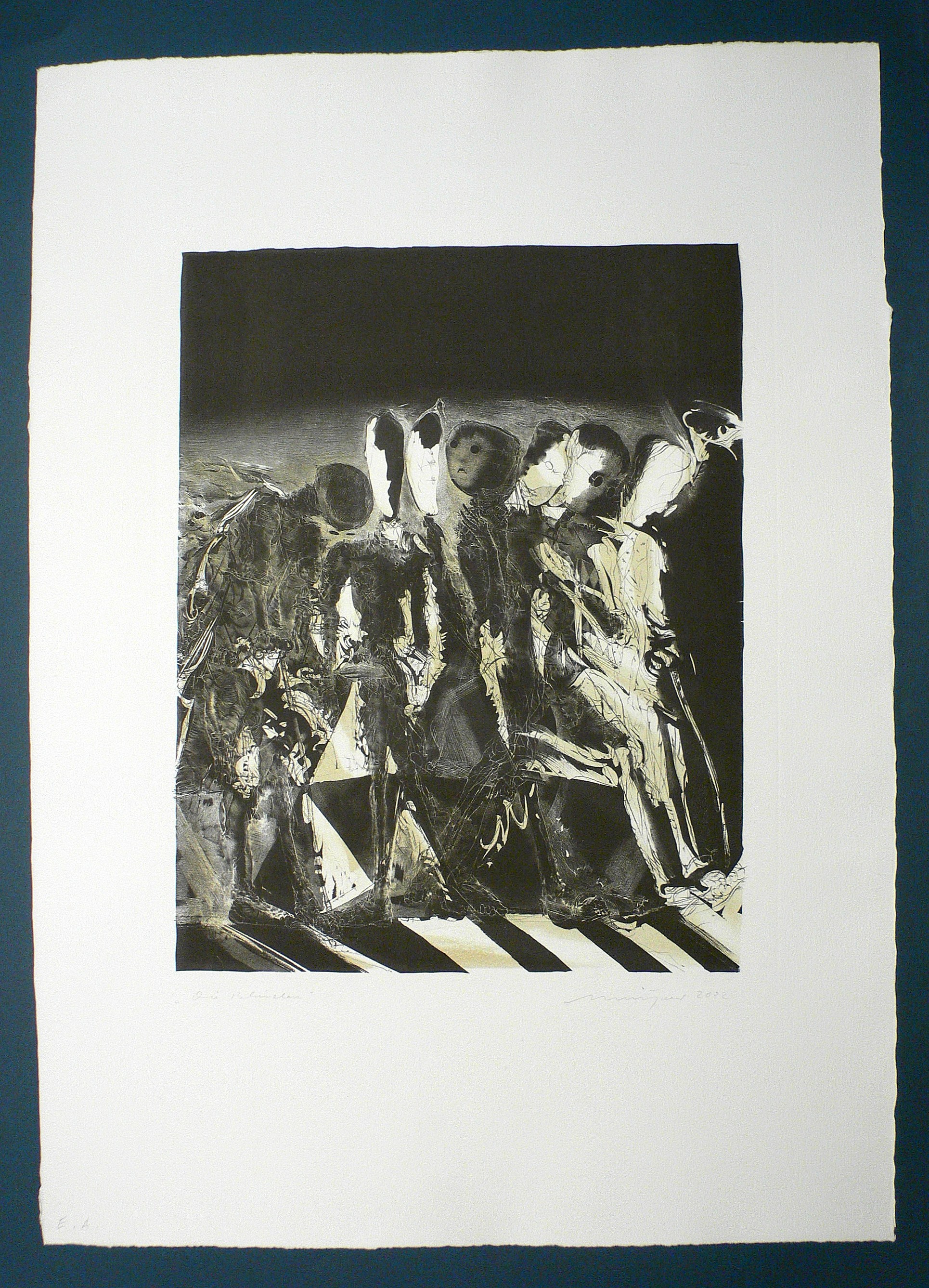 2002. Lithografie / Schablithografie, in Schwarz, auf Hahnemühle. – Originale Künstlergrafik, von Rolf Münzner. – Künstlerexemplar (e.a.). – 47,5 x 36,7 cm (Darstellung), 50,5 x 40,0 cm (Stein), 78,5 x 56 cm (Blatt).