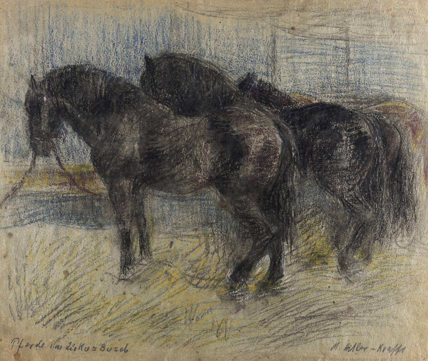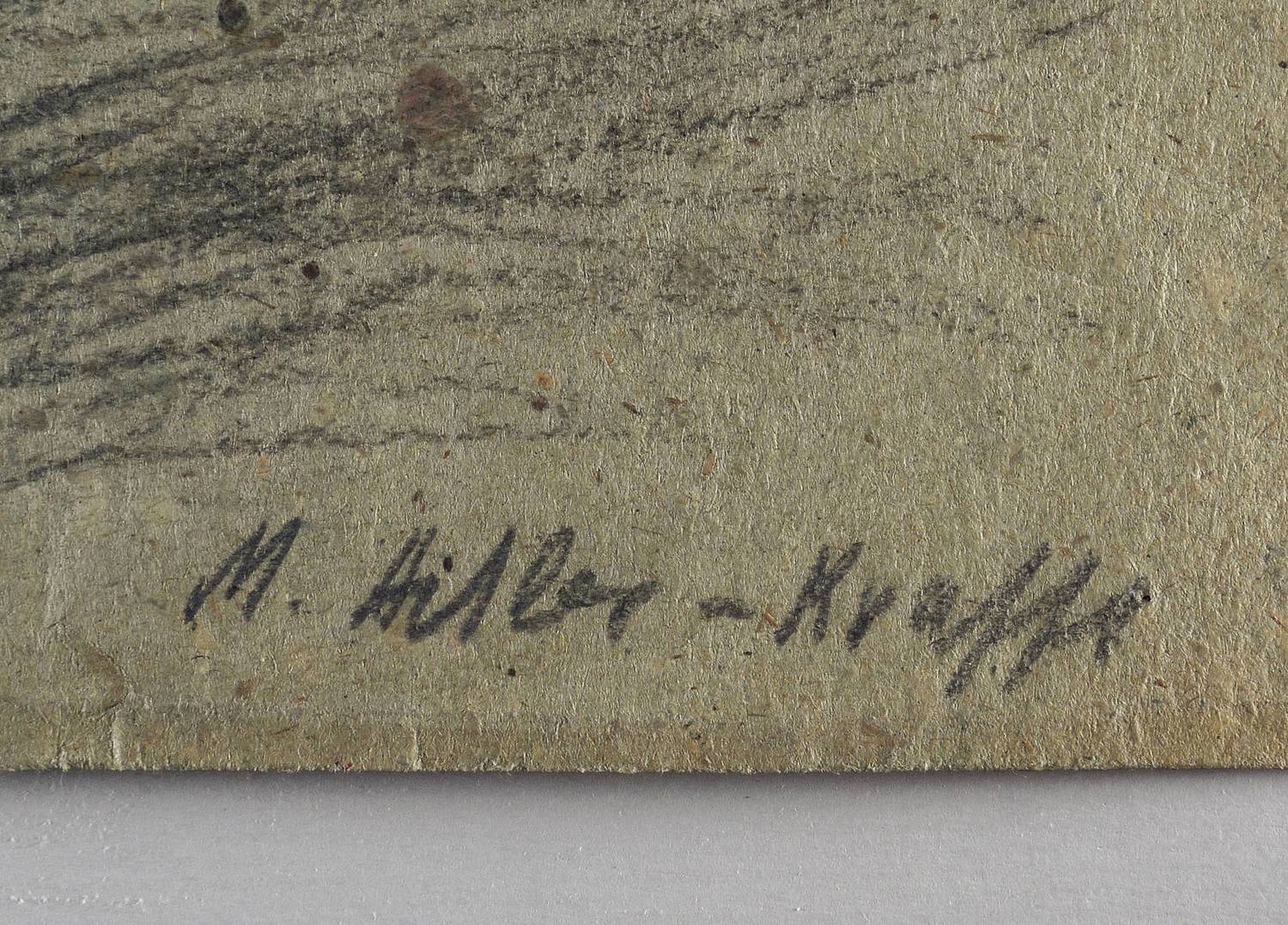 1995-2000. Zeichnung / Farbkreide, auf grobem grauem Papier. – Originale Künstlergrafik, von Maria Adler-Krafft. – Unikat. – 35,1 x 42,2 cm (Darstellung / Blatt).