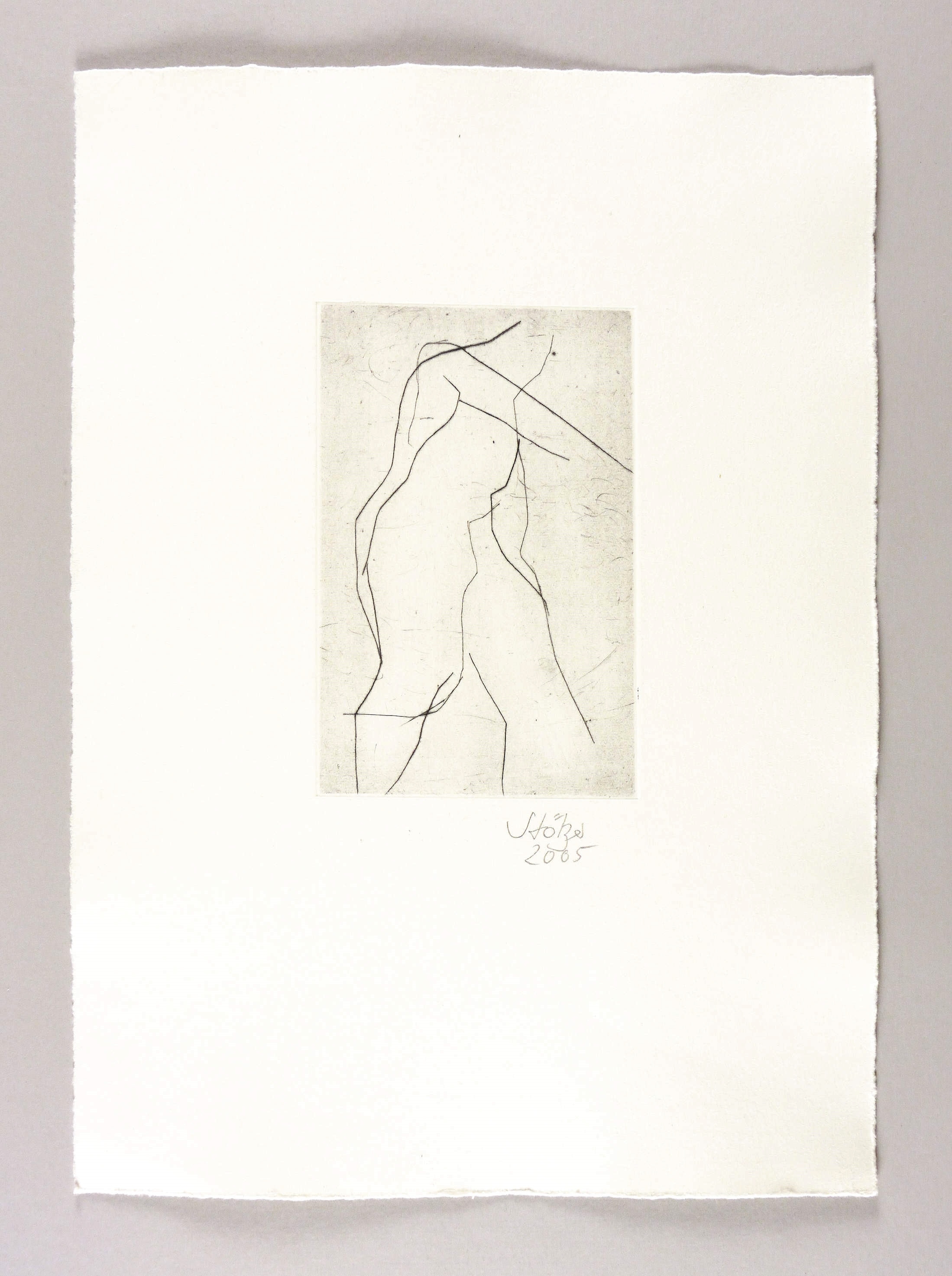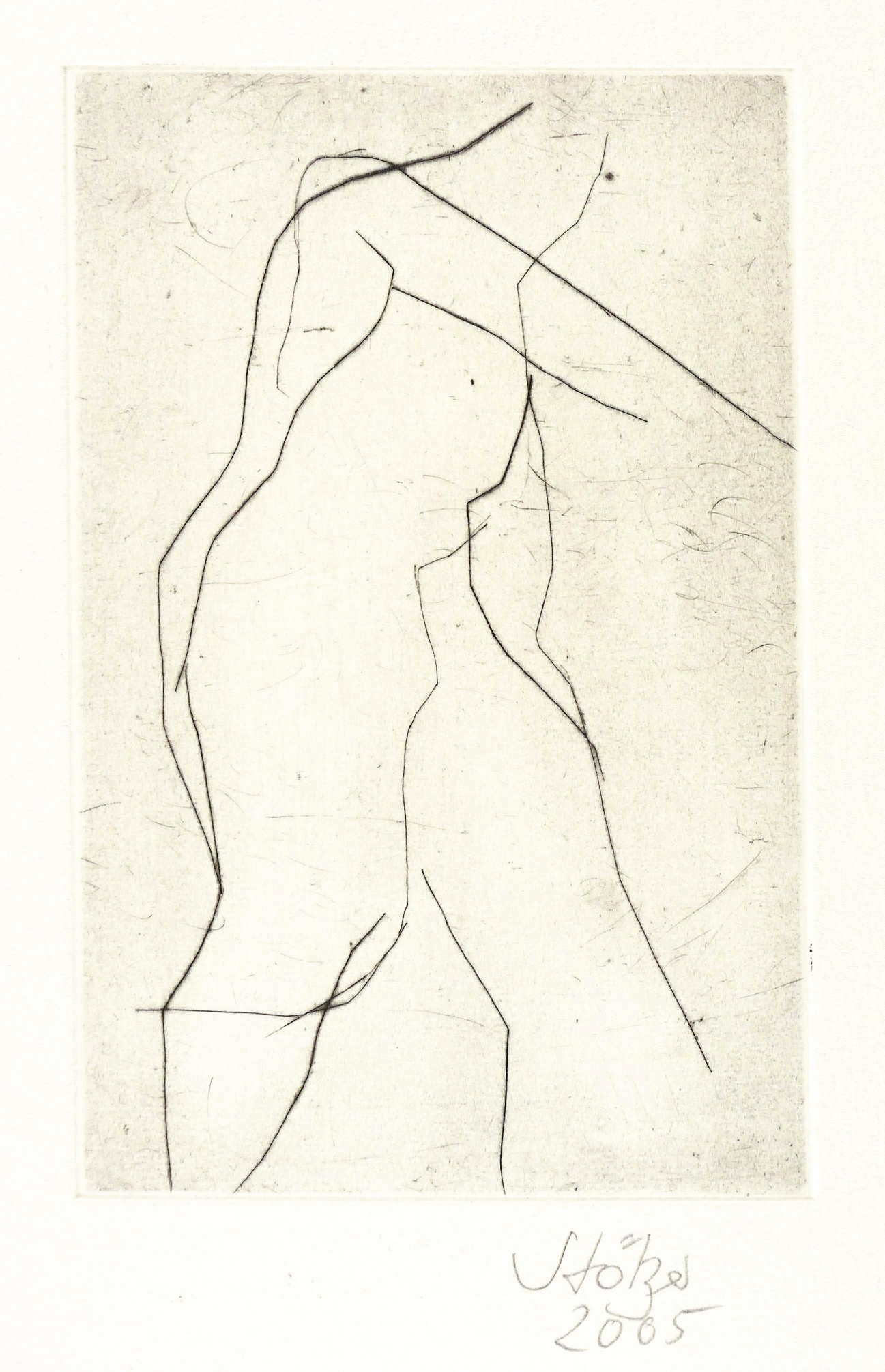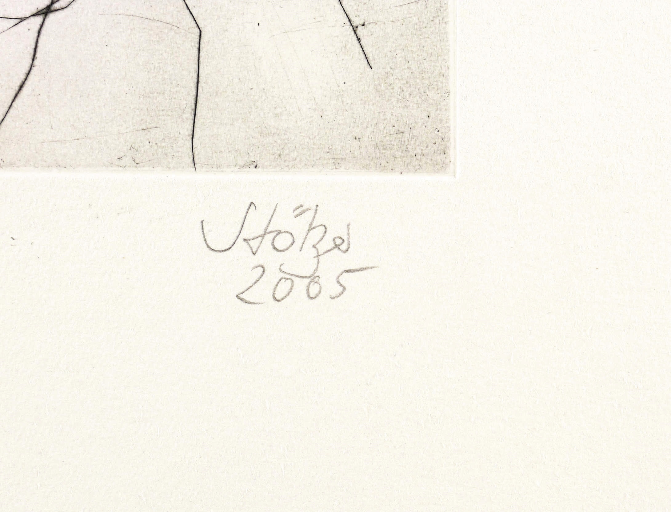 2001/2005. Radierung / Kaltnadel, in Schwarz, mit Plattenton, auf hellchamois Velinkarton. – Originale Künstlergrafik, von Werner Stötzer. – Künstlerexemplar (e.a.). – 18,4 x 12,0 cm (Darstellung / Platte), 42 x 30 cm (Blatt).