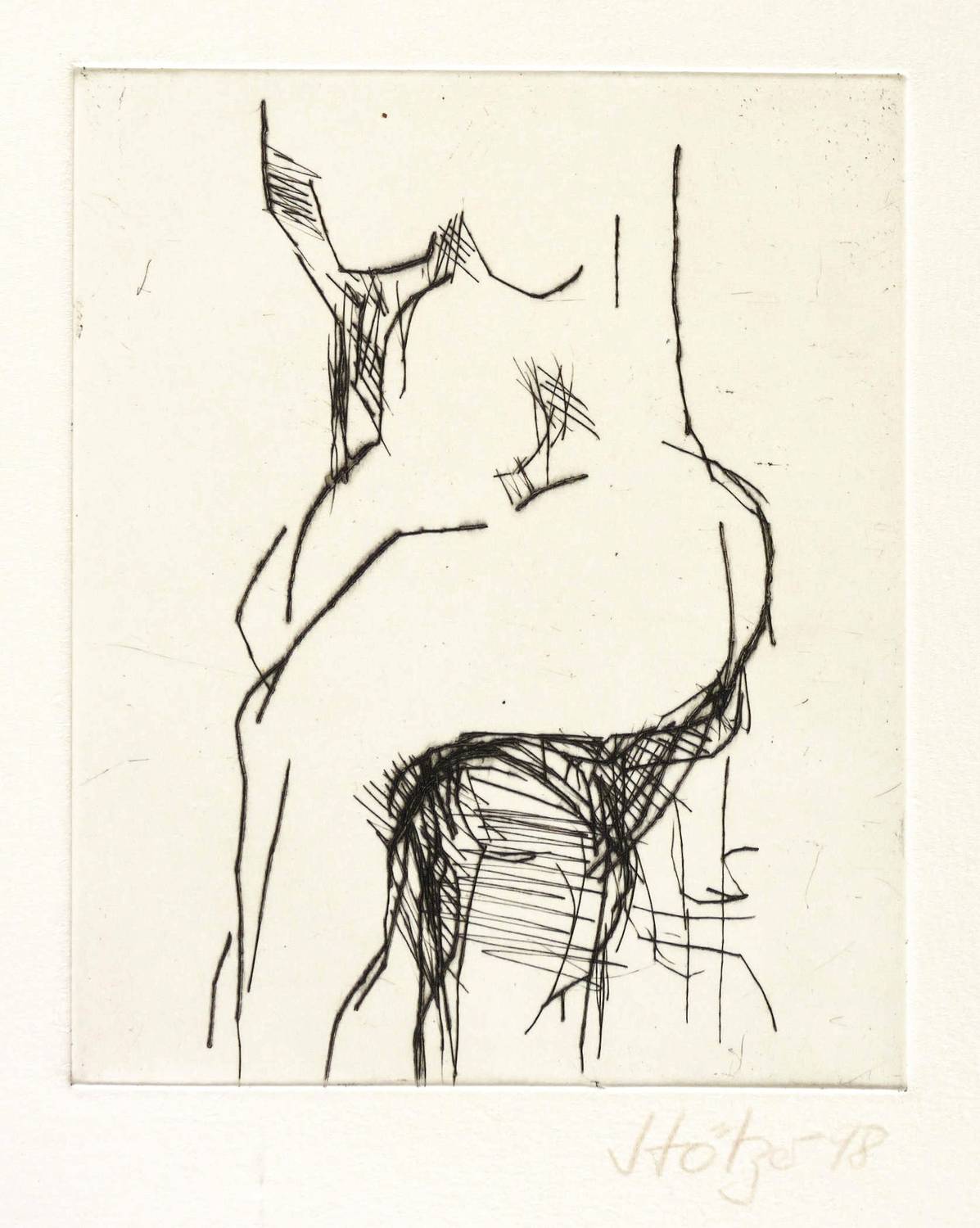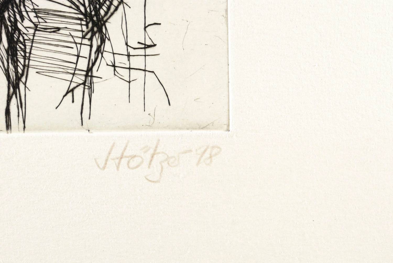 1998. Radierung / Kaltnadel, in Schwarz, auf hellchamois Velinkarton. – Originale Künstlergrafik, von Werner Stötzer. – 16,2 x 13,2 cm (Darstellung / Platte), 41 x 30 cm (Blatt).