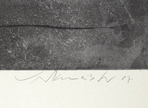 Wolfgang Werkmeister (*1941 Berlin, lebt und arbeitet in Hamburg). Deutscher Grafiker, bedeutender Vertreter der zeitgenössischen Radierkunst. 1960-64 Besuch der Akademie der Bildenden Künste Stuttgart, Fachklasse für freie Grafik und Illustration bei Gunther Böhmer. 1965 Besuch der Fachhochschule für Gestaltung Hamburg bei W. M. Busch und S. Oelke. 1966-68 tätig als Pressezeichner. 1972/73 Dozent an der Fachhochschule für Gestaltung, Hamburg. Zahlreiche Auslanfsaufenthalte und Stipendien in Marokko, USA, auf den Kanarischen Inseln, etc. 2001 Kunstpreis der Stadt Baden-Baden. Zentrales Ausdrucksmittel ist die Radierung, genauer die Aquatinta, in der er Landschaft als Hauptmotiv regelrecht zelebriert und in technisch ebenso aufwändigen wie raffinierten Blättern druckgrafisch umsetzt. Stilistisch siedelt sein Werk zwischen einem geschickt eingesetzten Fotorealismus und der lakonischen Bildsprache eines Ansel Adams.
