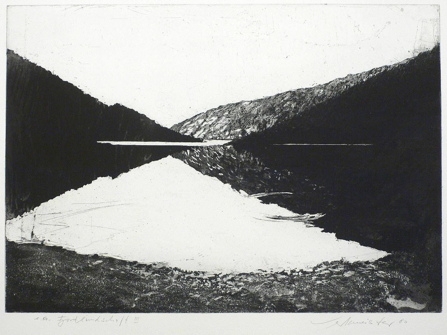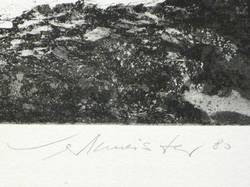 Wolfgang Werkmeister (*1941 Berlin, lebt und arbeitet in Hamburg). Deutscher Grafiker, bedeutender Vertreter der zeitgenössischen Radierkunst. 1960-64 Besuch der Akademie der Bildenden Künste Stuttgart, Fachklasse für freie Grafik und Illustration bei Gunther Böhmer. 1965 Besuch der Fachhochschule für Gestaltung Hamburg bei W. M. Busch und S. Oelke. 1966-68 tätig als Pressezeichner. 1972/73 Dozent an der Fachhochschule für Gestaltung, Hamburg. Zahlreiche Auslanfsaufenthalte und Stipendien in Marokko, USA, auf den Kanarischen Inseln, etc. 2001 Kunstpreis der Stadt Baden-Baden. Zentrales Ausdrucksmittel ist die Radierung, genauer die Aquatinta, in der er Landschaft als Hauptmotiv regelrecht zelebriert und in technisch ebenso aufwändigen wie raffinierten Blättern druckgrafisch umsetzt. Stilistisch siedelt sein Werk zwischen einem geschickt eingesetzten Fotorealismus und der lakonischen Bildsprache eines Ansel Adams.