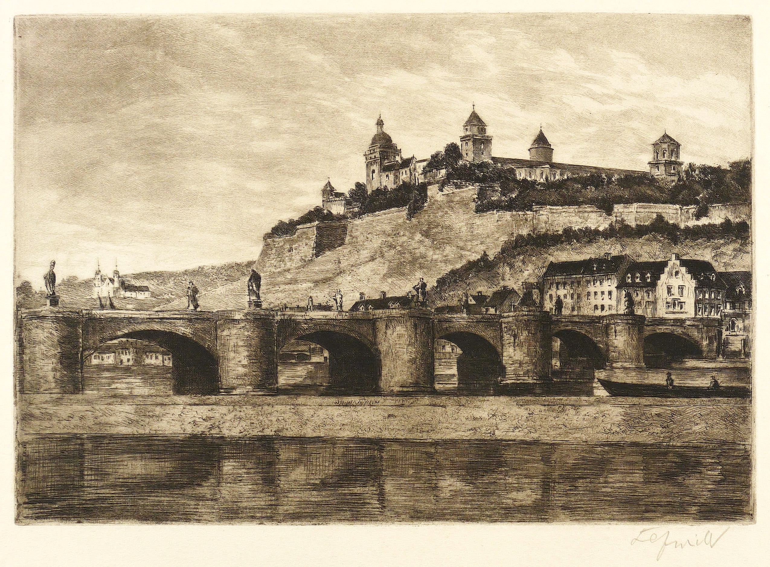 Um 1920. Radierung / Strichätzung, in Braunschwarz, auf Kupferdruckkarton. – Originale Künstlergrafik, von Hermann Kupferschmid. – 23,3 x 33,8 cm (Darstellung / Platte), 34 x 45 cm (Blatt).