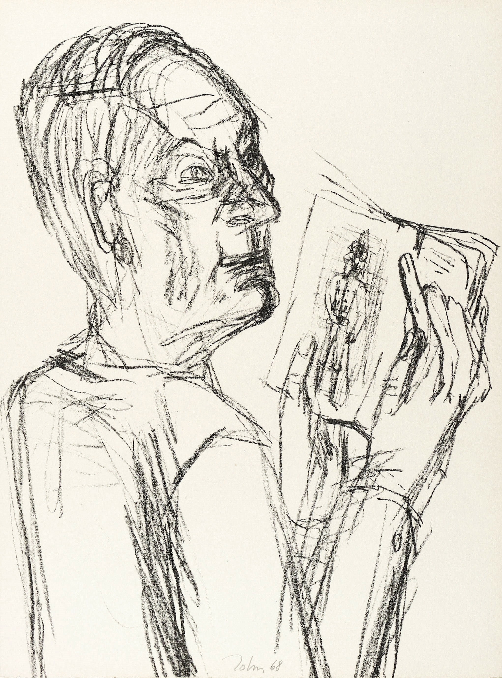 1968. Lithografie / Kreidelithografie, in Schwarz, auf hellchamois Weißenborn. – Originale Künstlergrafik, von Joachim John. – Auflage 85 Exemplar. – 50,5 x 37,5 cm (Darstellung / Blatt).