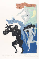 Unterhalb der Darstellung signiert und datiert rechts. Darunter Auflagenbezeichnung und bezeichnet ″Holzschnitt Handdruck″. Links betitelt. Am Blattrand rechts unten Wasserzeichen der Hahnemühle. – Syrinx. – Tadelloser Zustand.
